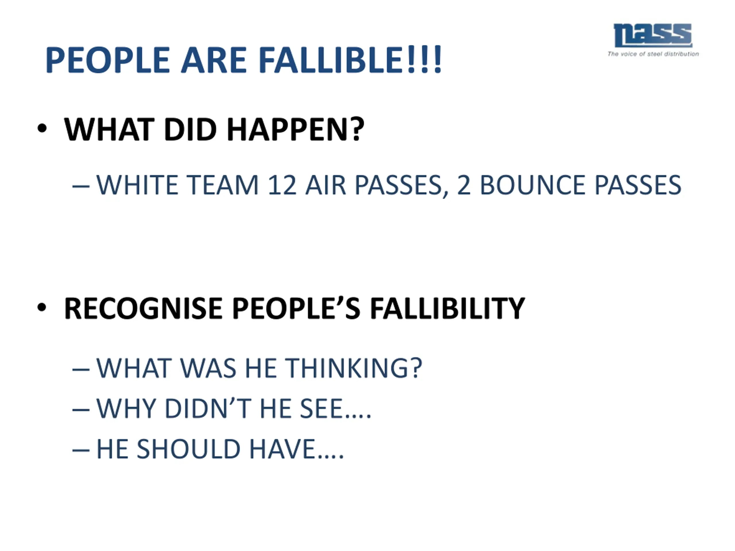 PEOPLE ARE FALLIBLE!!! WHAT DID HAPPEN? WHITE TEAM 12 AIR PASSES, 2 BOUNCE PASSES RECOGNISE PEOPLE S FALLIBILITY WHAT WAS HE THINKING? WHY DIDN T HE SEE . HE SHOULD HAVE .