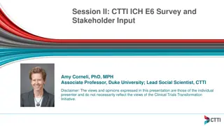 Explore the Clinical Trials Transformation Initiative's efforts in updating ICH E6 guidelines to improve global clinical trials. Learn about CTTI's findings, insights from stakeholders, and discussions on the necessary updates for ICH E6. Engage with industry experts and regulatory authorities to understand the impact of the ICH-E6(R3) Good Clinical Practice standards on research outcomes.