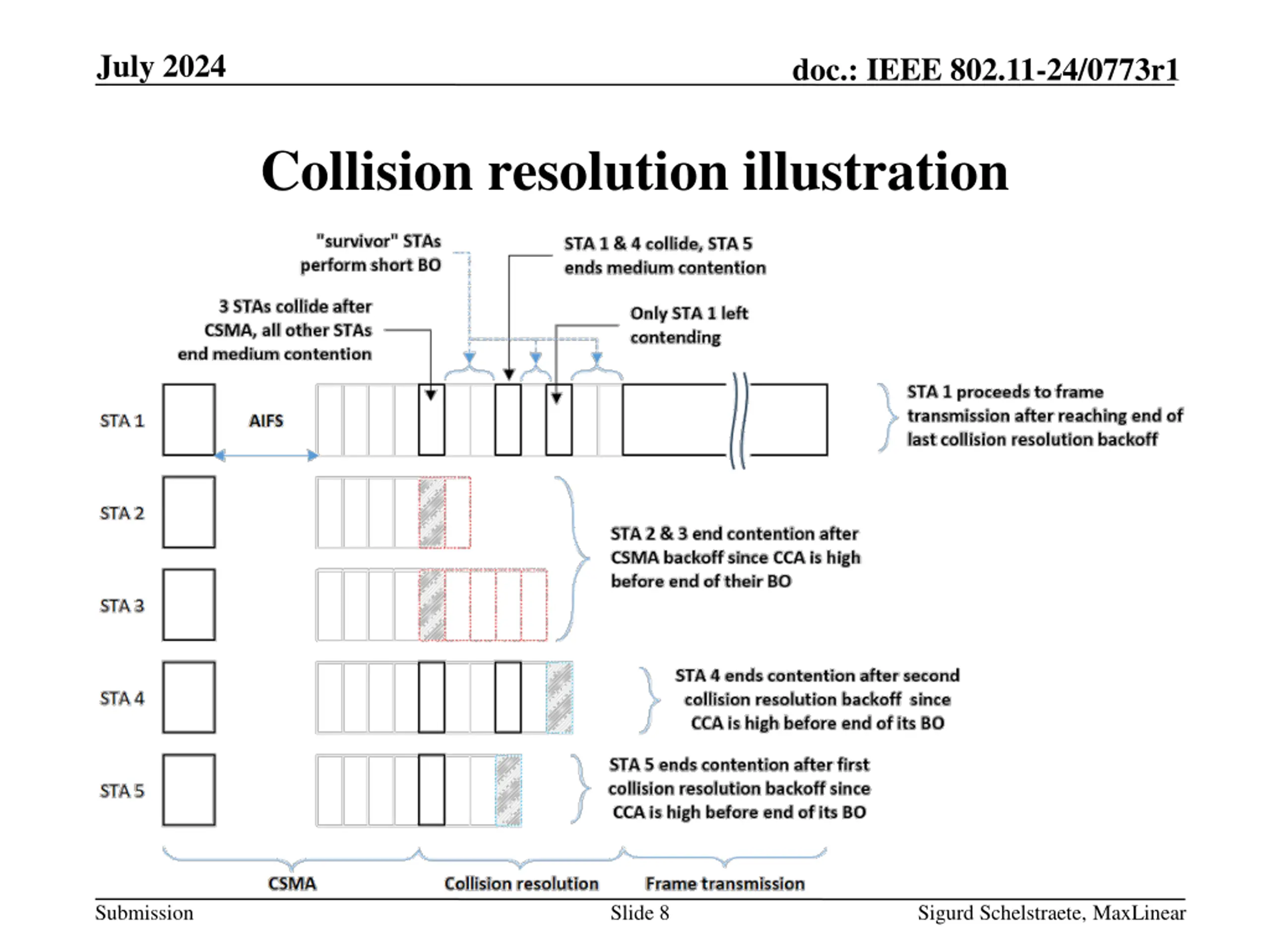 July 2024 doc.: IEEE 802.11-24/0773r1 Collision resolution illustration Submission Slide 8 Sigurd Schelstraete, MaxLinear