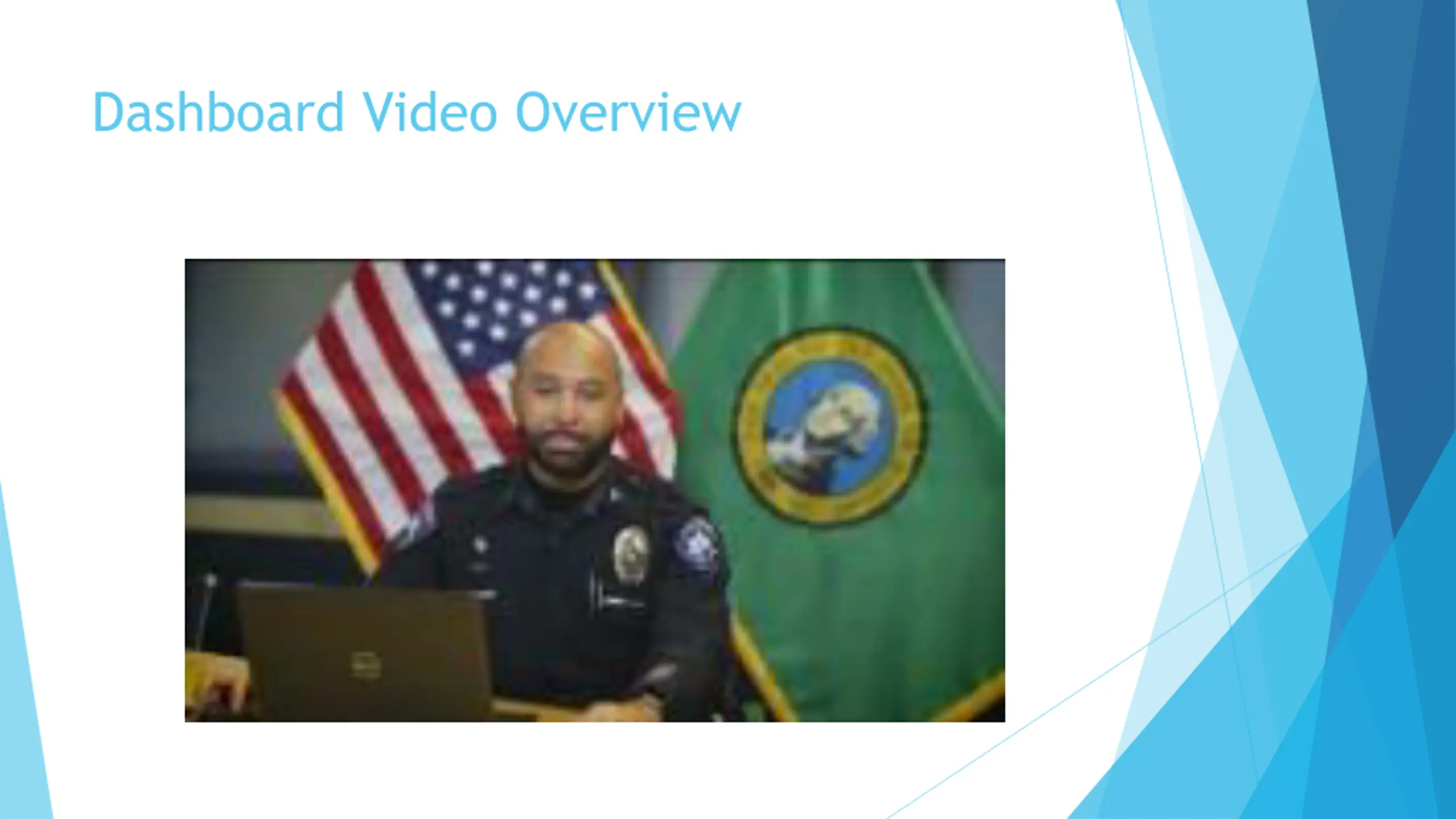 Dashboard Objectives Build trusting relationships between the Tacoma Police Department and the community by enhancing the use of data and modern data tools. Objectives: Increase transparency and accessibility Engage the community Enhance community safety Provide detailed data