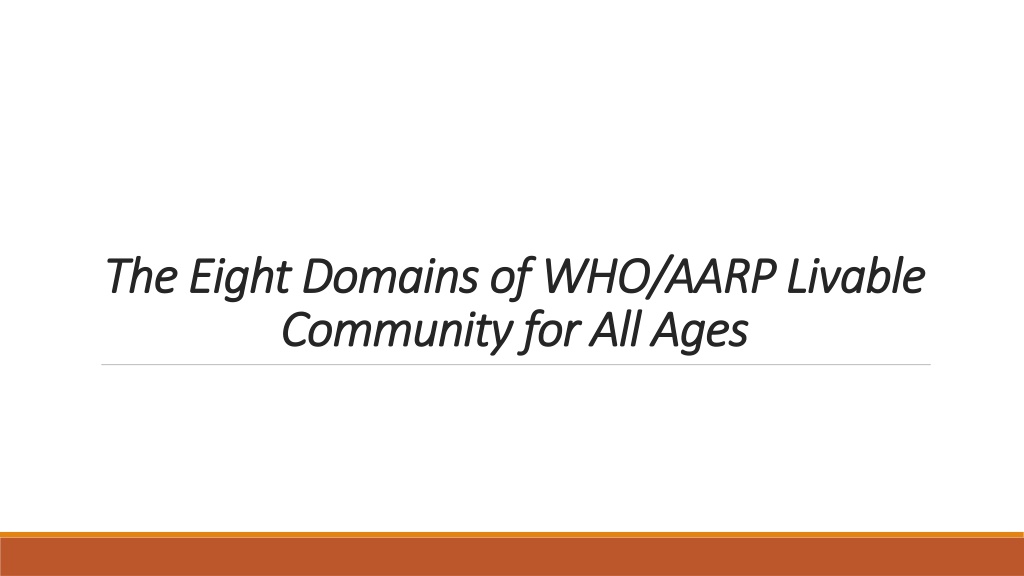 The Eight Domains The Eight Domains of Community for All Ages Community for All Ages of WHO/AARP WHO/AARP Livable Livable