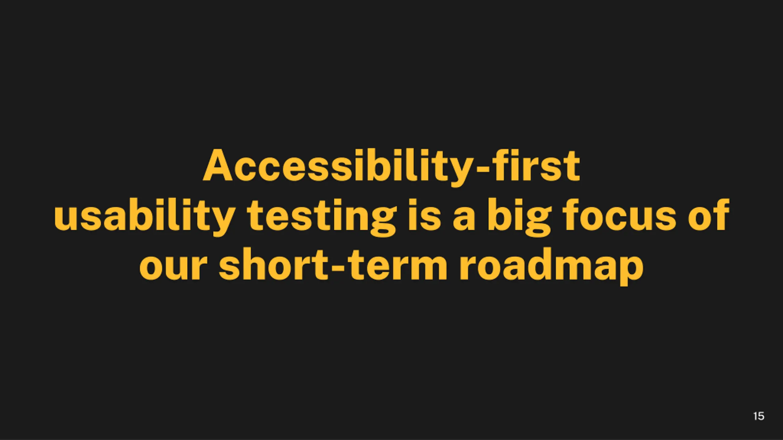 Accessibility-first usability testing is a big focus of our short-term roadmap 15
