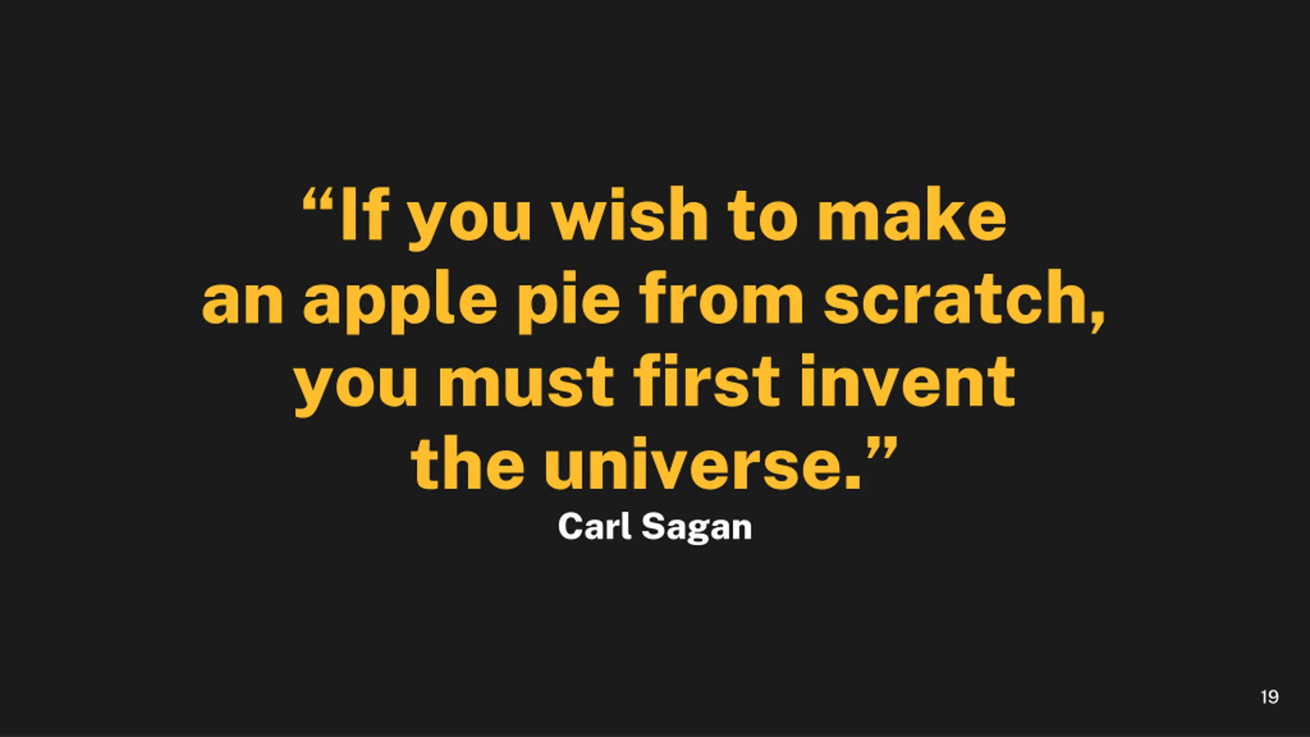 If you wish to make an apple pie from scratch, you must first invent the universe. Carl Sagan 19