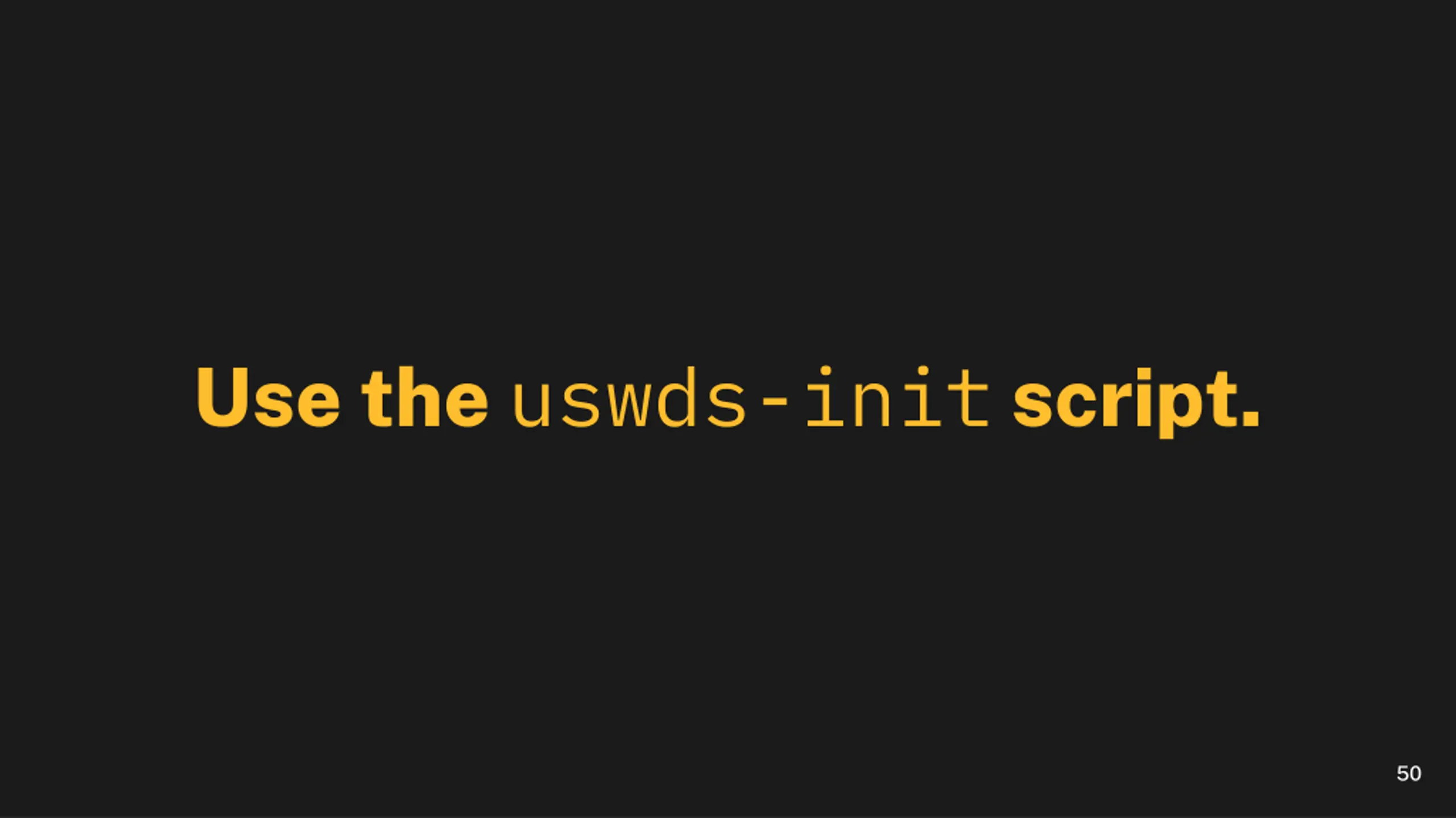 USWDS FAQ Component testing Tabs Design kits Theming USWDS Custom fonts and colors Banner flash USWDS in other frameworks Importing USWDS component JavaScript 3