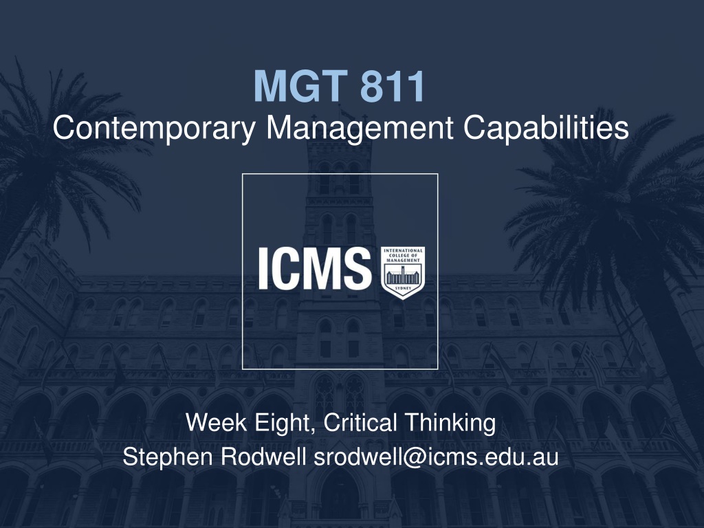 MGT 811 Contemporary Management Capabilities Week Eight, Critical Thinking Stephen Rodwell srodwell@icms.edu.au