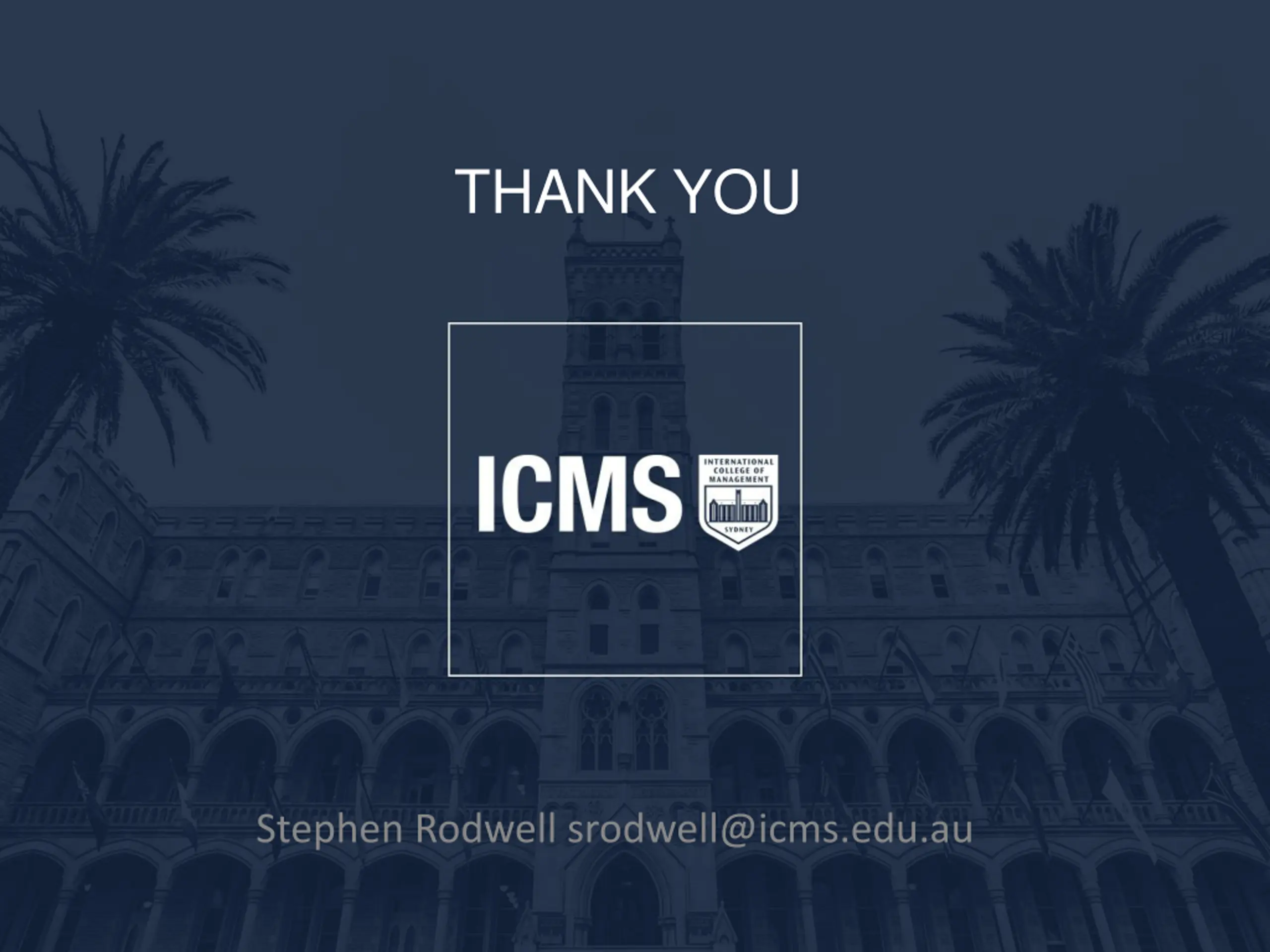 THANK YOU Stephen Rodwell srodwell@icms.edu.au