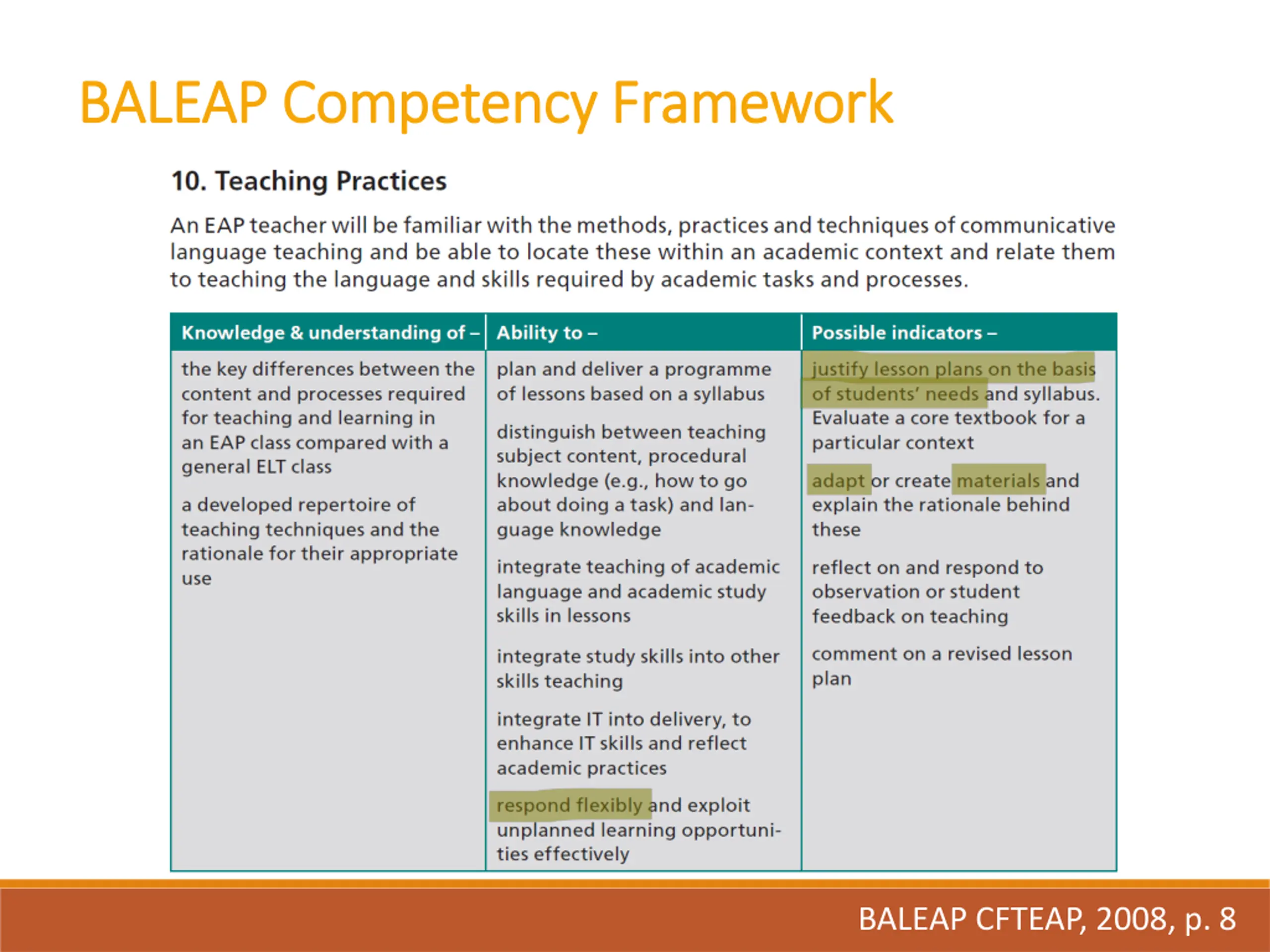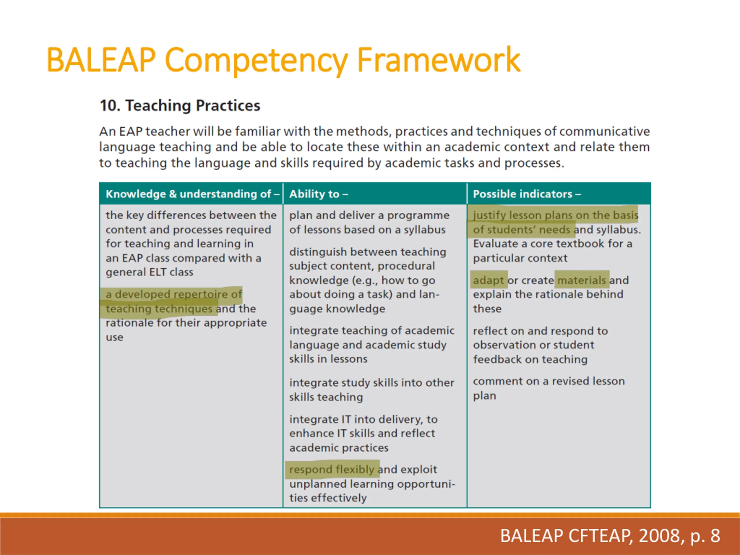 BALEAP Competency Framework BALEAP Competency Framework BALEAP CFTEAP, 2008, p. 8