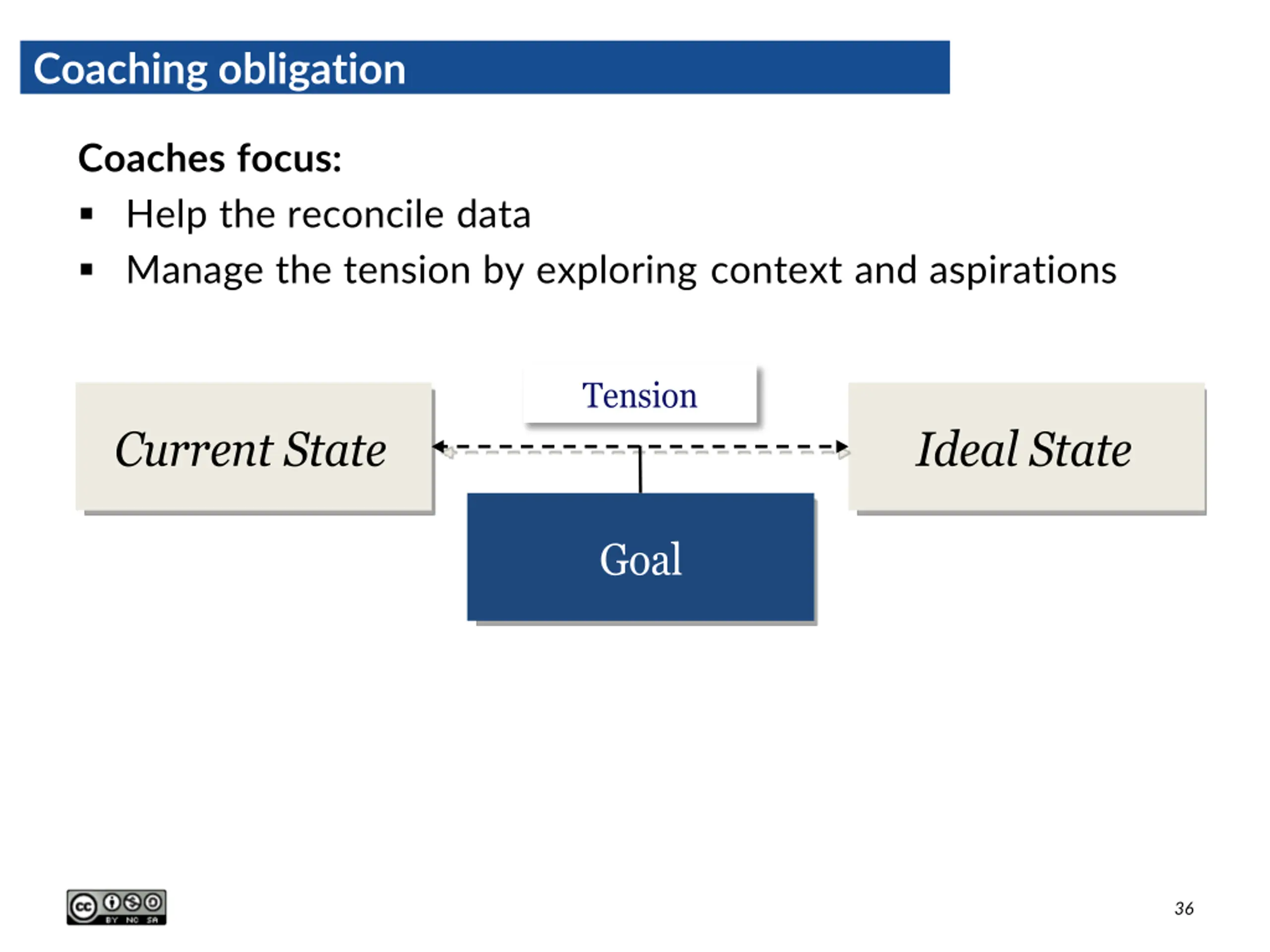 Coaching obligation Coaches focus: Help the reconcile data Manage the tension by exploring context and aspirations Tension Current State Ideal State Goal 36