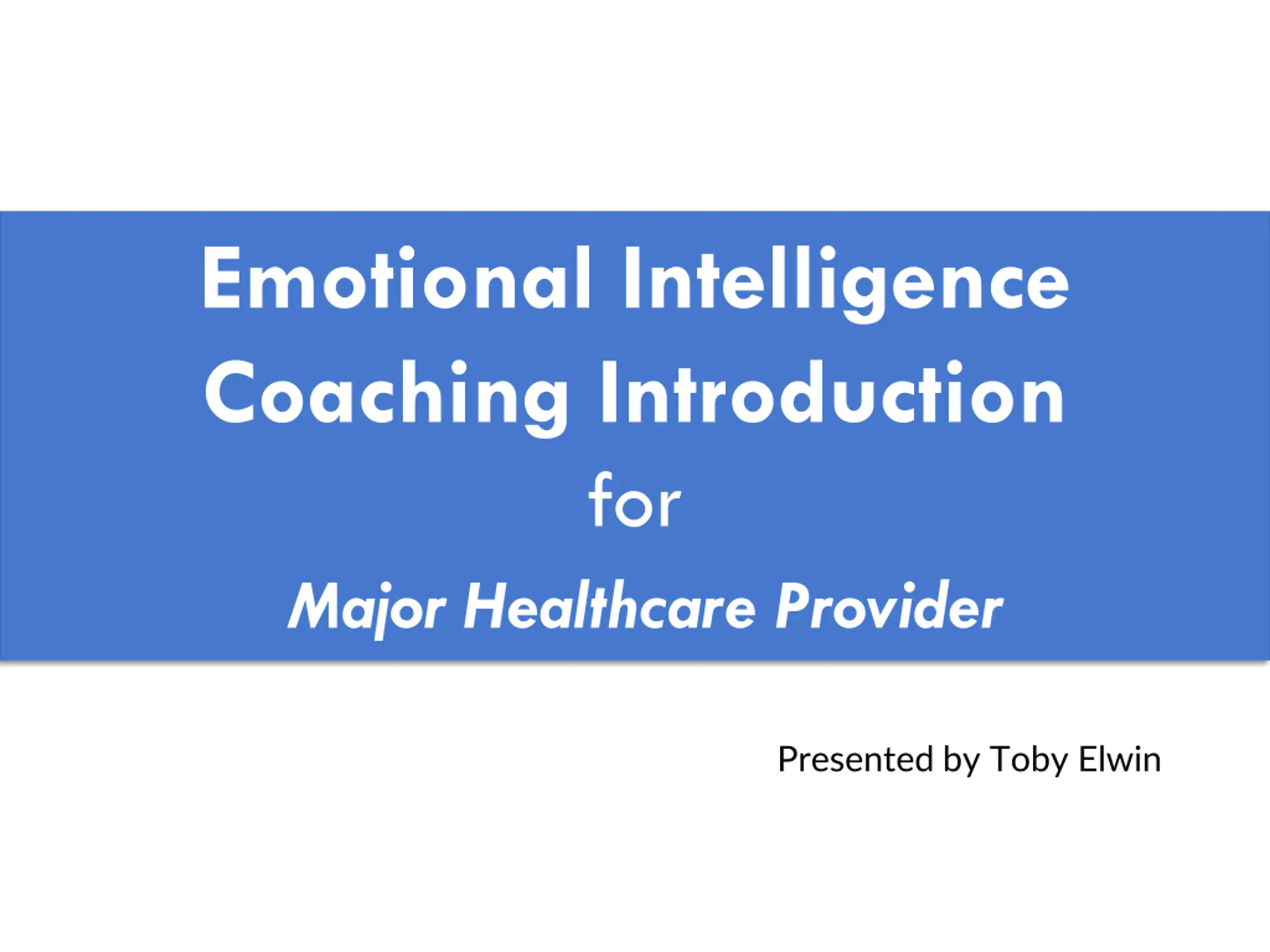 Emotional Intelligence Coaching Introduction for Major Healthcare Provider Presented by Toby Elwin www.TobyElwin.com
