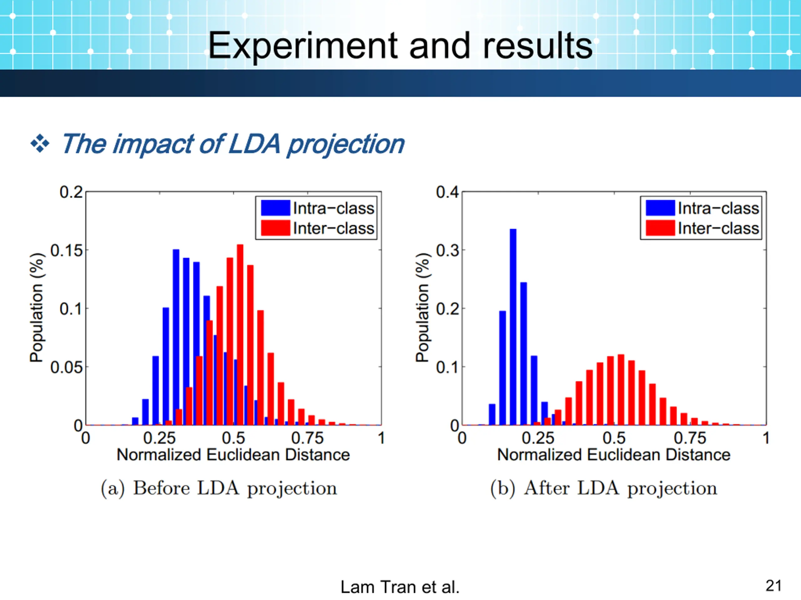 Experiment and results The The impact impact of of LDA LDA projection projection Lam Tran et al. 21