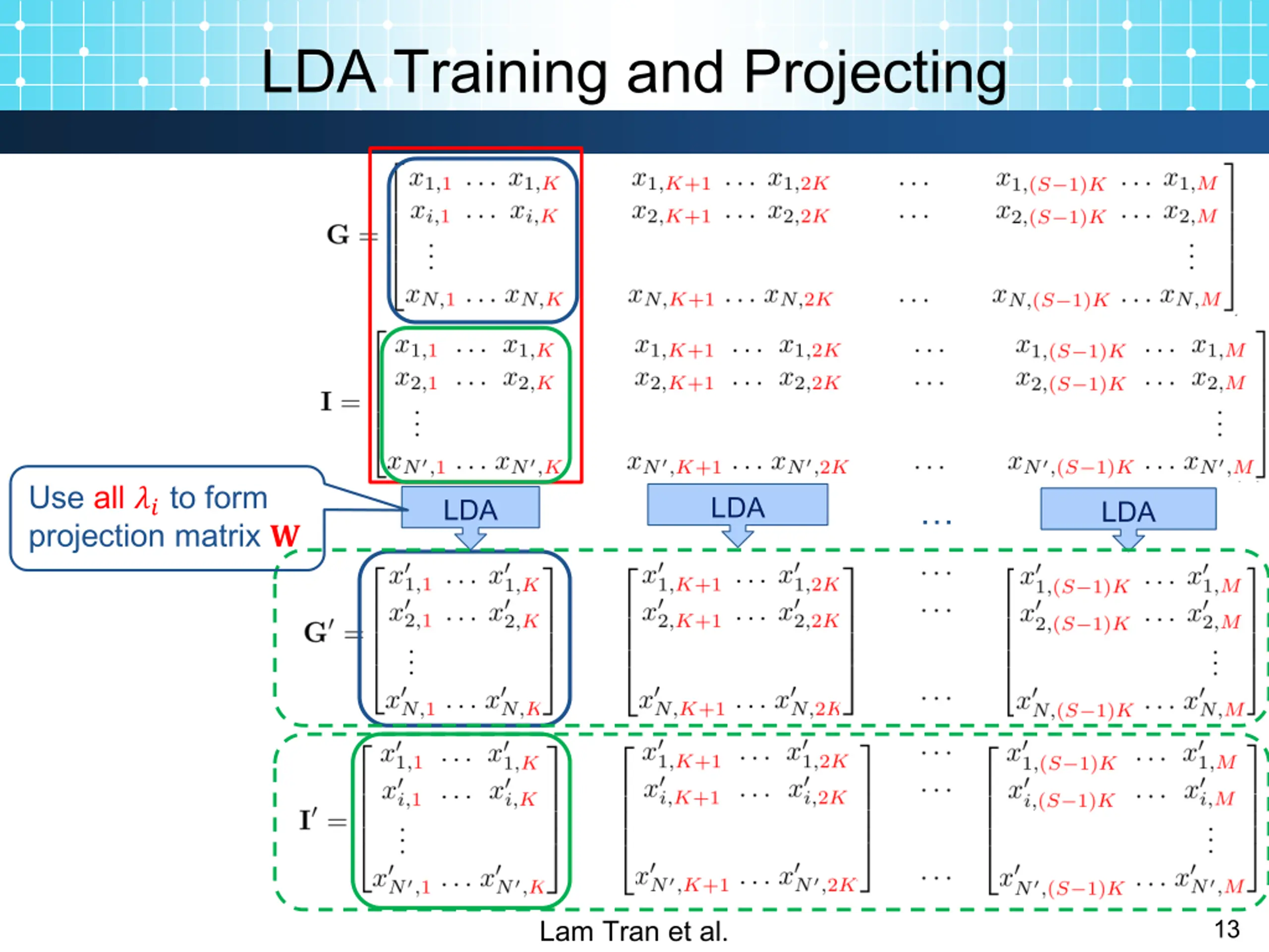 LDA Training and Projecting Use all ?? to form projection matrix ? LDA LDA LDA Lam Tran et al. 13