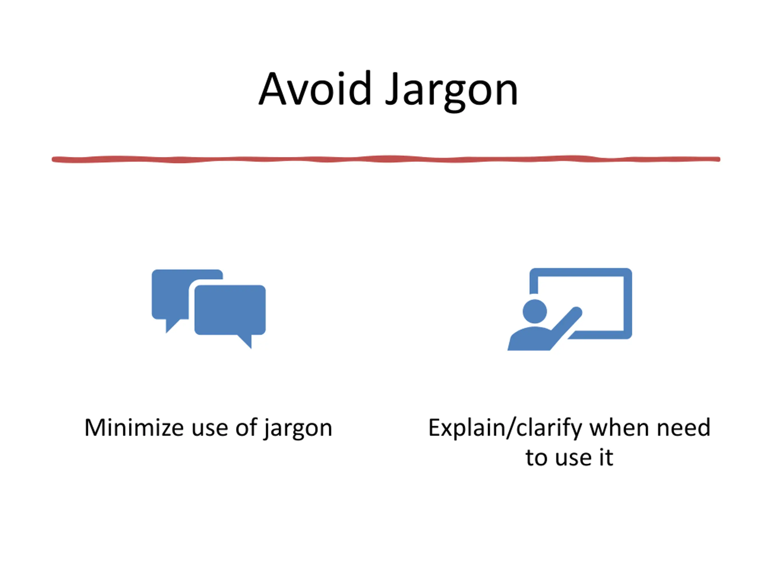 Avoid Jargon Minimize use of jargon Explain/clarify when need to use it