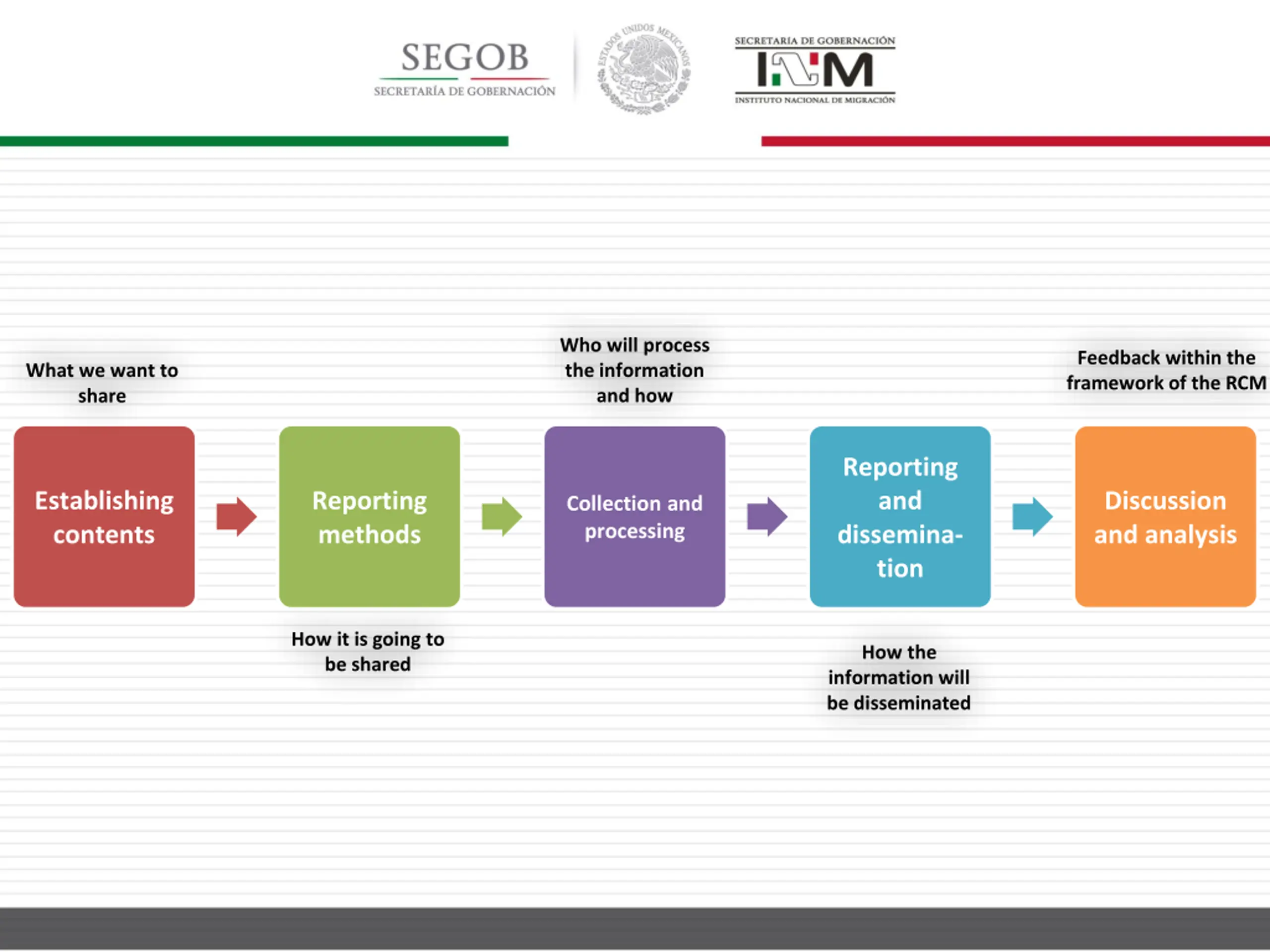 Who will process the information and how Feedback within the framework of the RCM What we want to share Reporting and dissemina- tion Establishing contents Reporting methods Discussion and analysis Collection and processing How it is going to be shared How the information will be disseminated