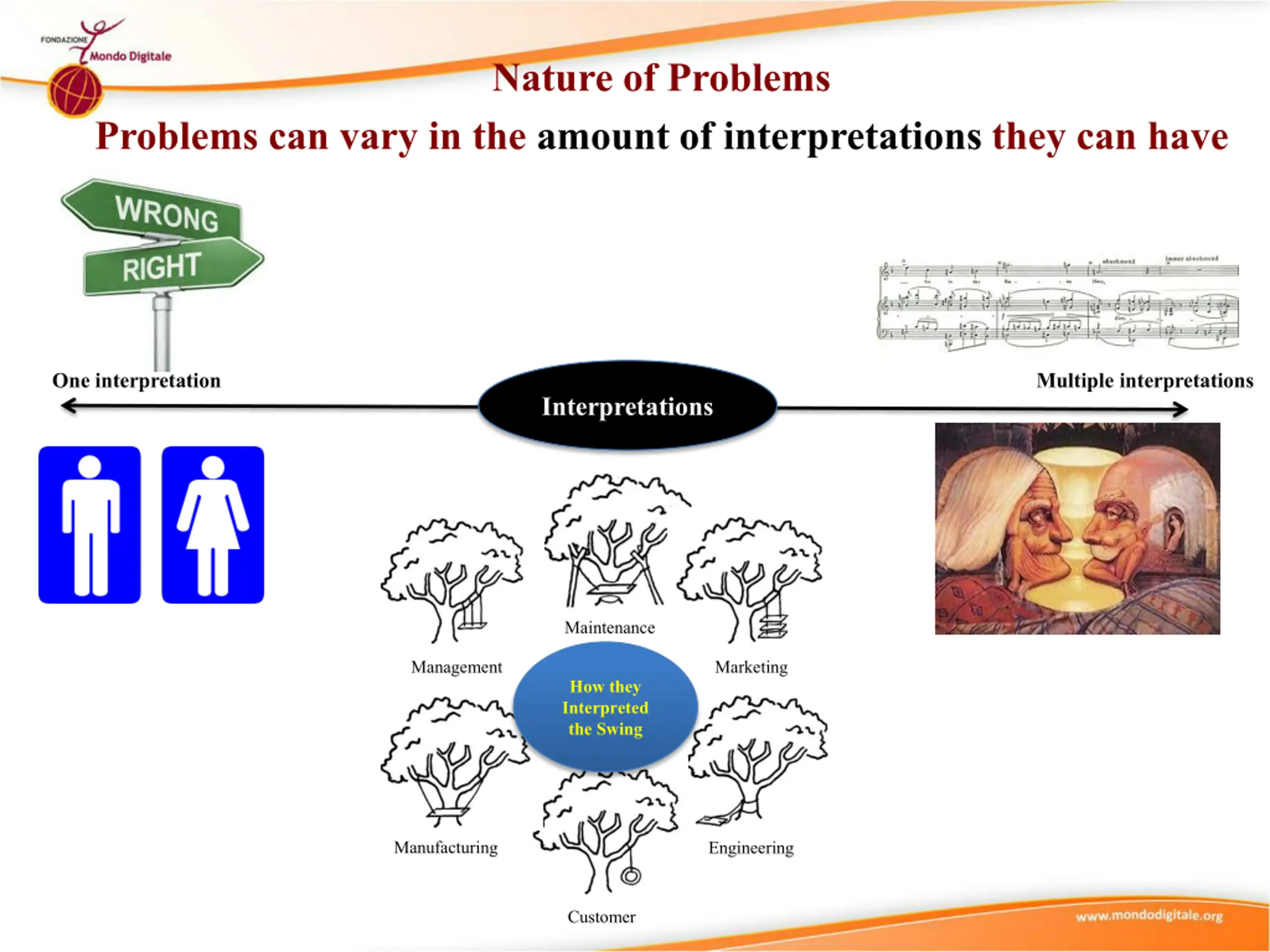 Nature of Problems Problems can vary in the amount of interpretations they can have One interpretation Multiple interpretations Interpretations Maintenance Management Marketing How they Interpreted the Swing Manufacturing Engineering Customer