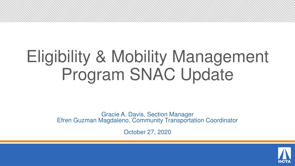 Eligibility & Mobility Management Program SNAC Update Gracie A. Davis, Section Manager Efren Guzman Magdaleno, Community Transportation Coordinator October 27, 2020