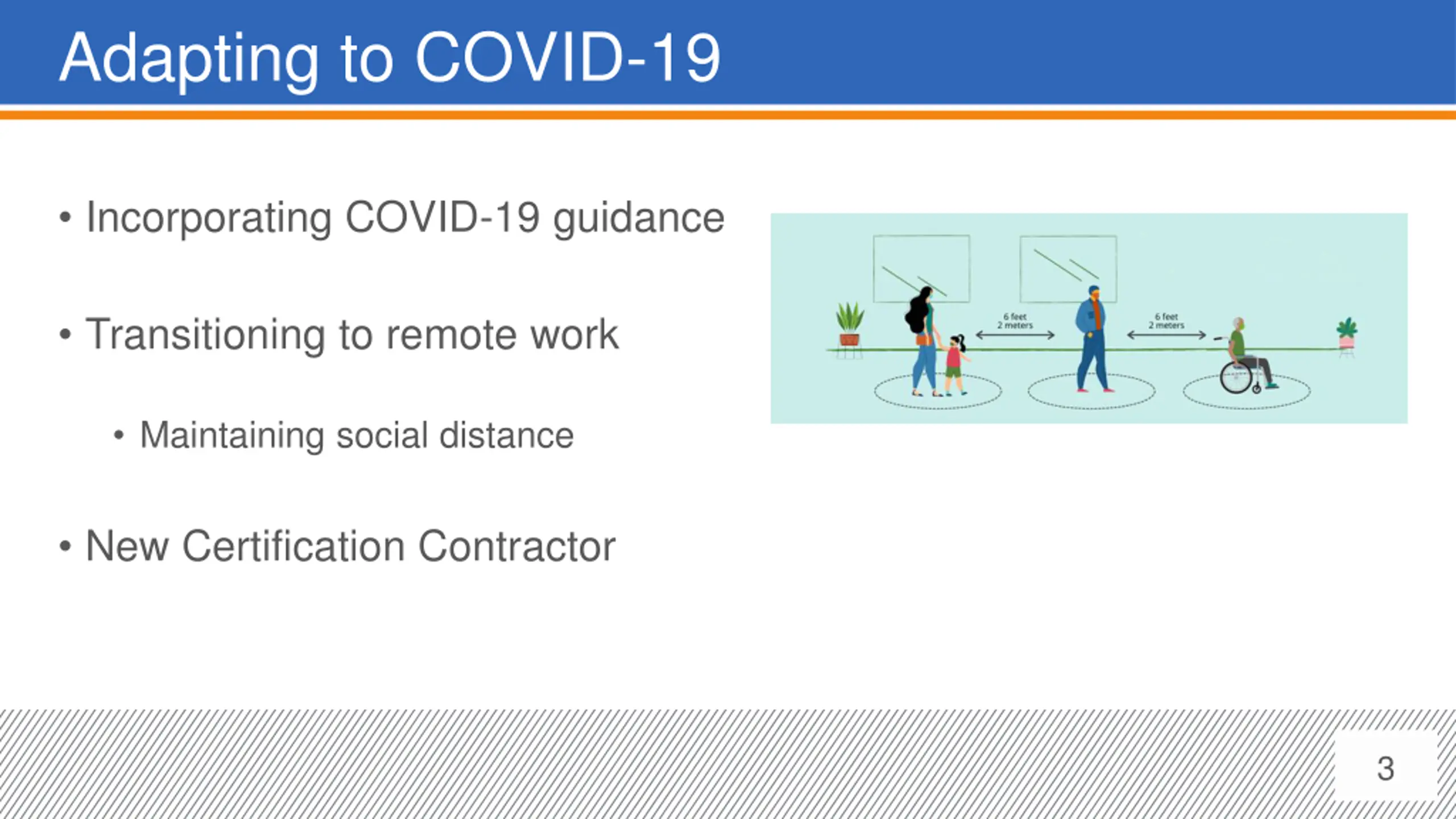 Adapting to COVID-19 Incorporating COVID-19 guidance Transitioning to remote work Maintaining social distance New Certification Contractor 3