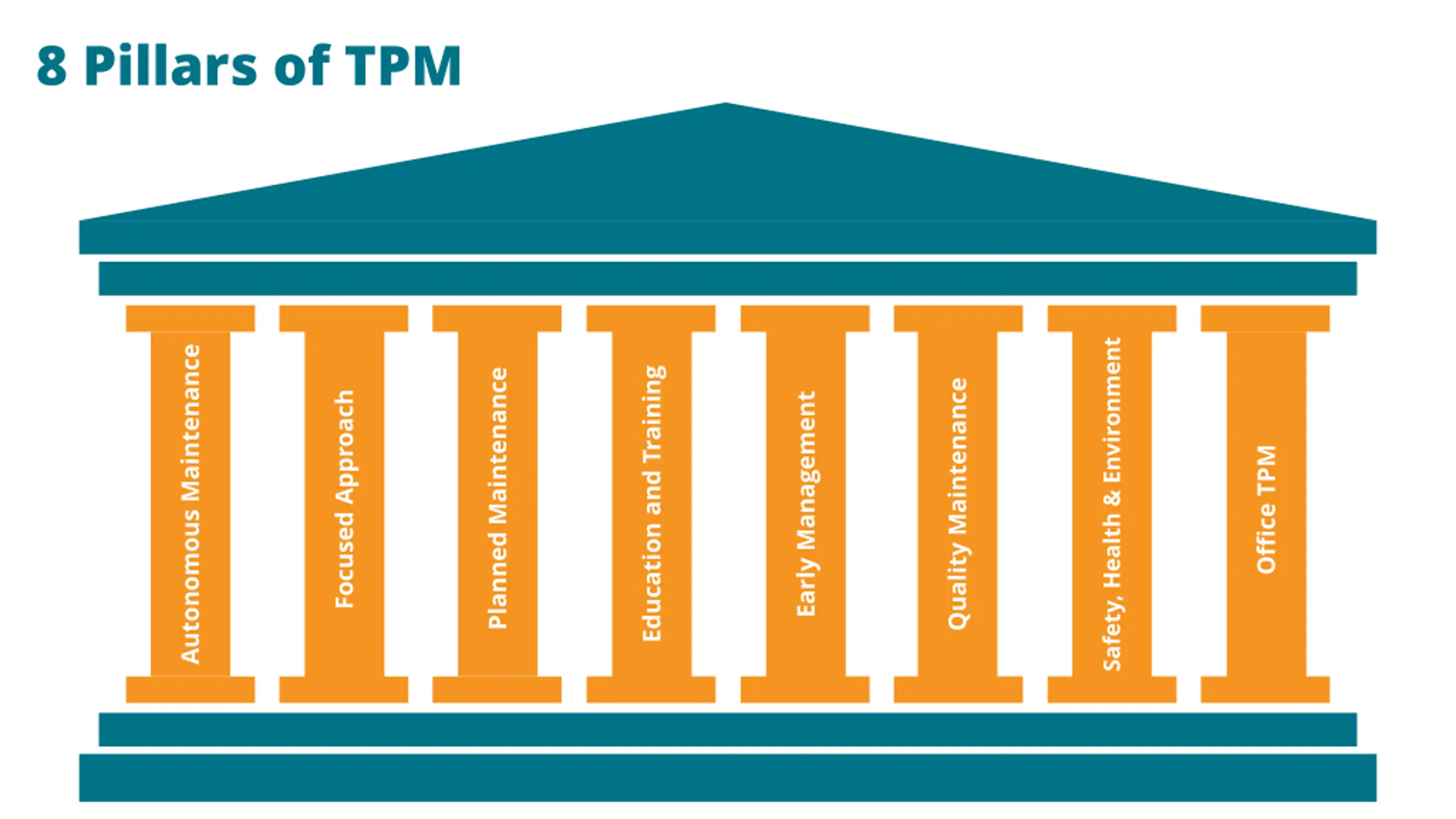 8 Pillars of TPM Safety, Health & Environment Autonomous Maintenance Education and Training Planned Maintenance Quality Maintenance Focused Approach Early Management Office TPM