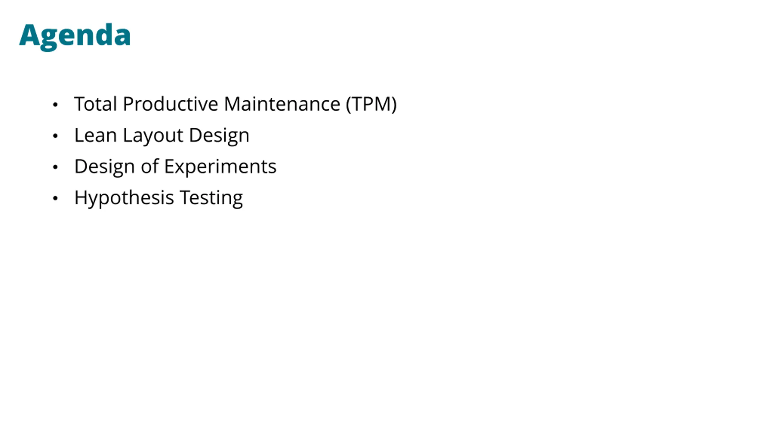 Agenda Total Productive Maintenance (TPM) Lean Layout Design Design of Experiments Hypothesis Testing