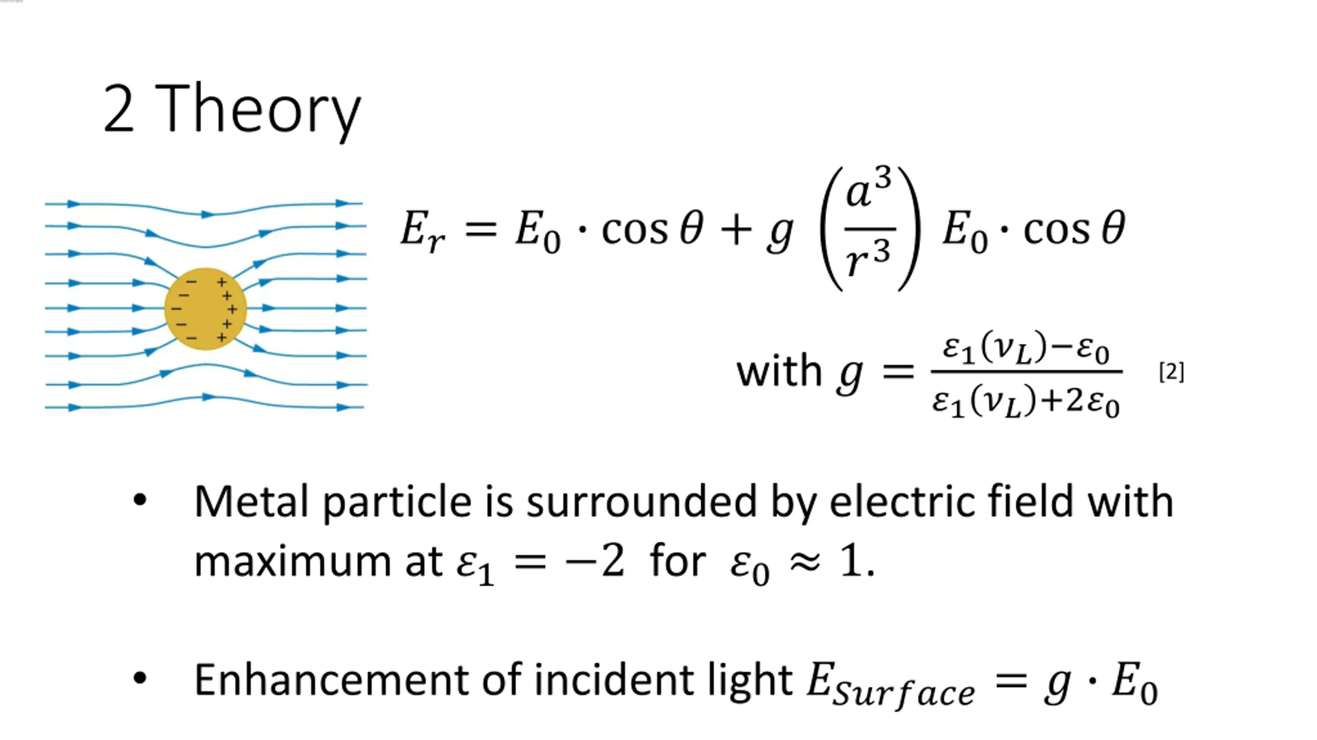 2 Theory ?3 ?3 ?0 cos? ??= ?0 cos? + ? ?1?? ?0 ?1??+2?0 with ? = [2] Metal particle is surrounded by electric field with maximum at ?1= 2 for ?0 1. Enhancement of incident light ????????= ? ?0