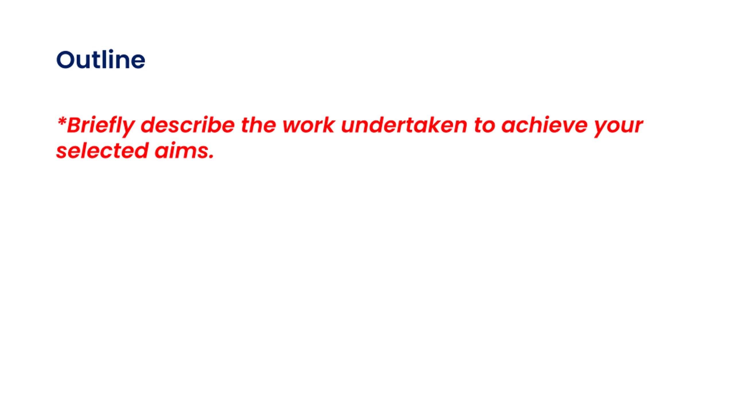 Outline *Briefly describe the work undertaken to achieve your selected aims.