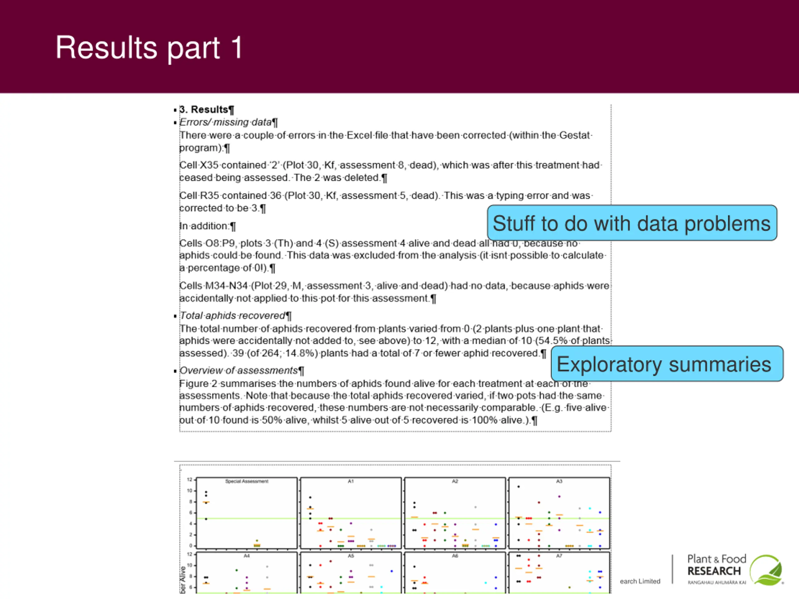 Results part 1 Stuff to do with data problems Exploratory summaries The New Zealand Institute for Plant & Food Research Limited