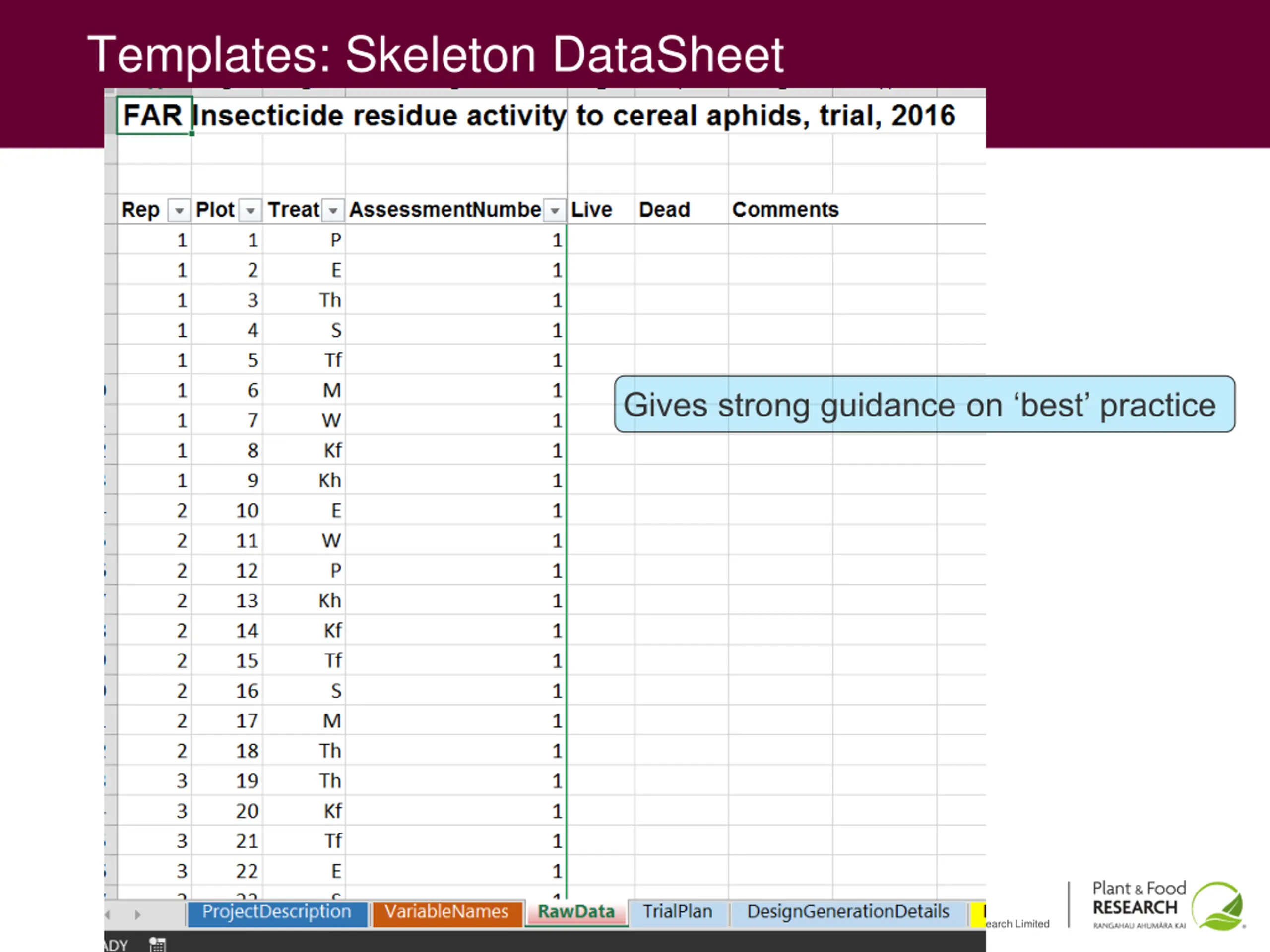 Templates: Skeleton DataSheet Gives strong guidance on best practice The New Zealand Institute for Plant & Food Research Limited