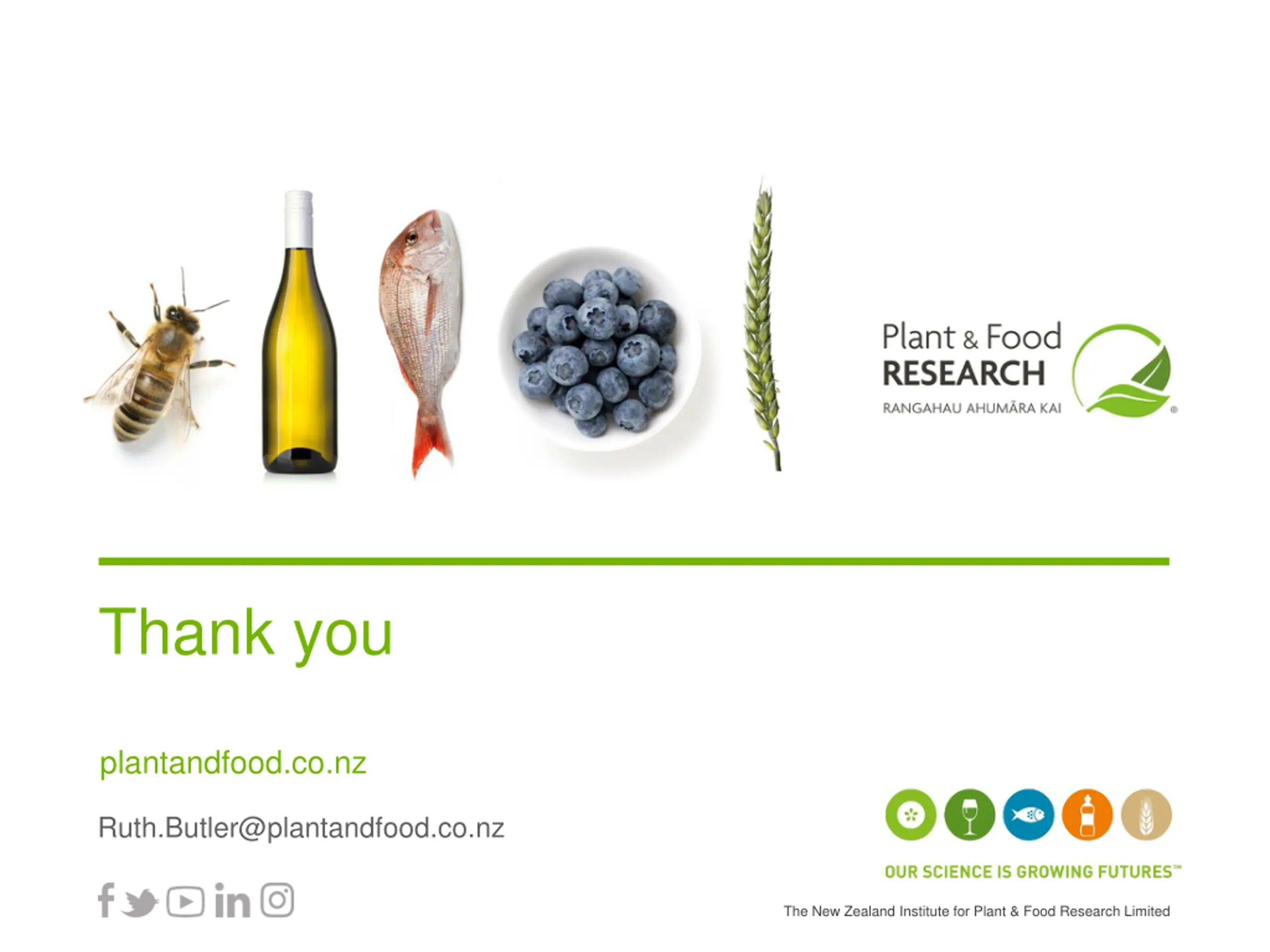 Thank you www.plantandfood.co.nz plantandfood.co.nz Ruth.Butler@plantandfood.co.nz The New Zealand Institute for Plant & Food Research Limited