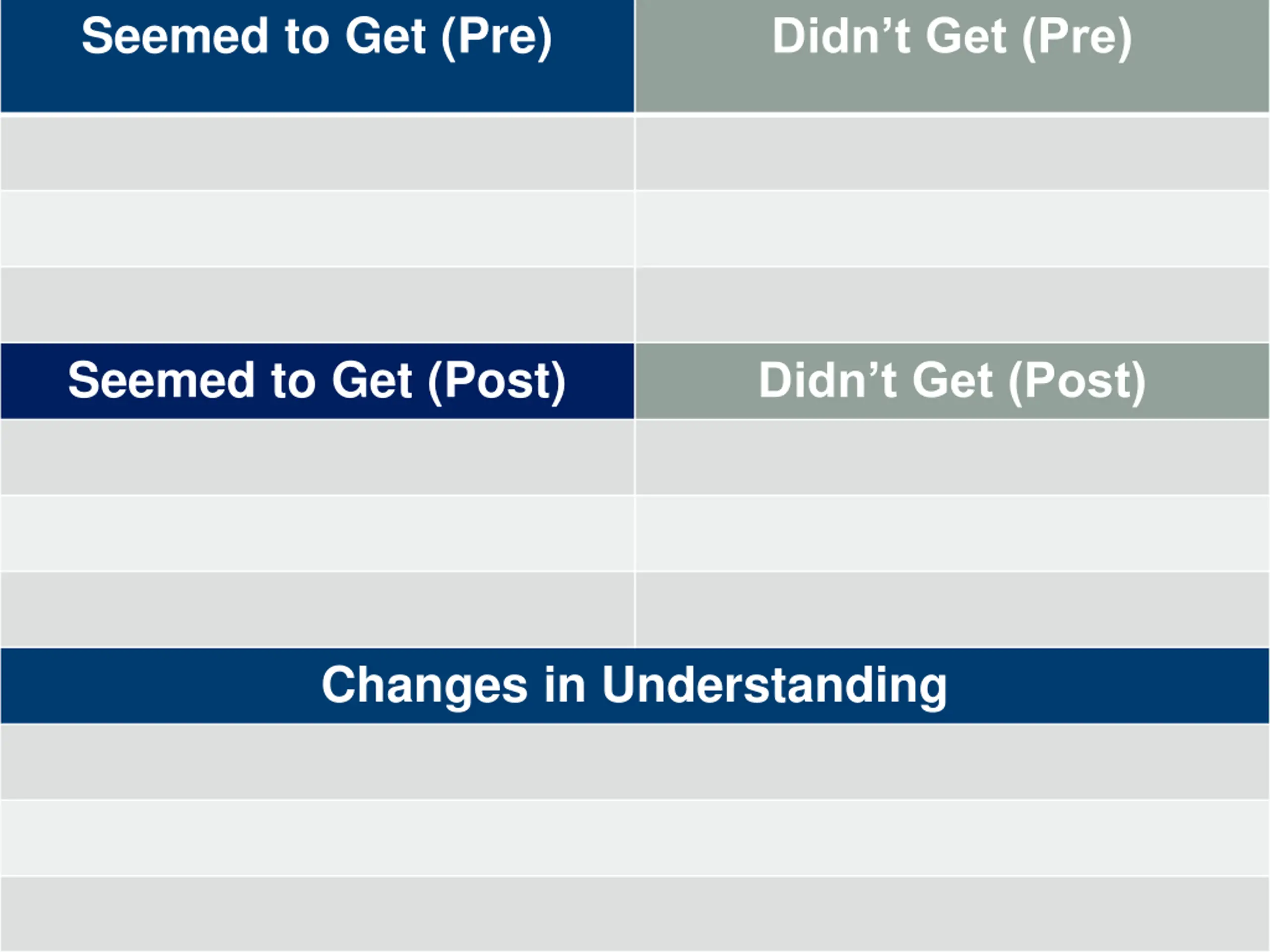 Seemed to Get (Pre) Didn t Get (Pre) med to Get (Pre) Seemed to Get (Post) Didn t Get (Post) Changes in Understanding