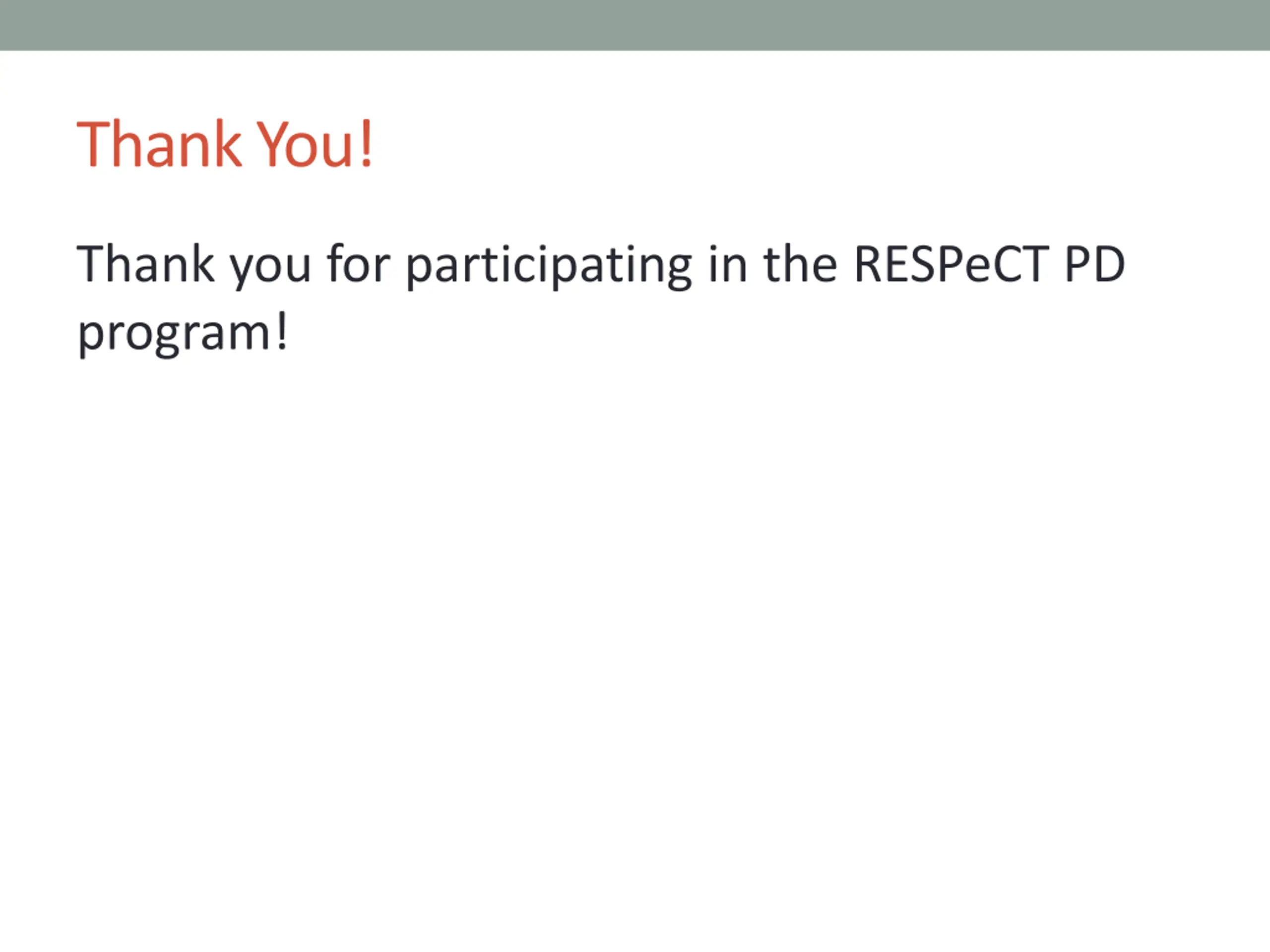 Thank You! Thank you for participating in the RESPeCT PD program!