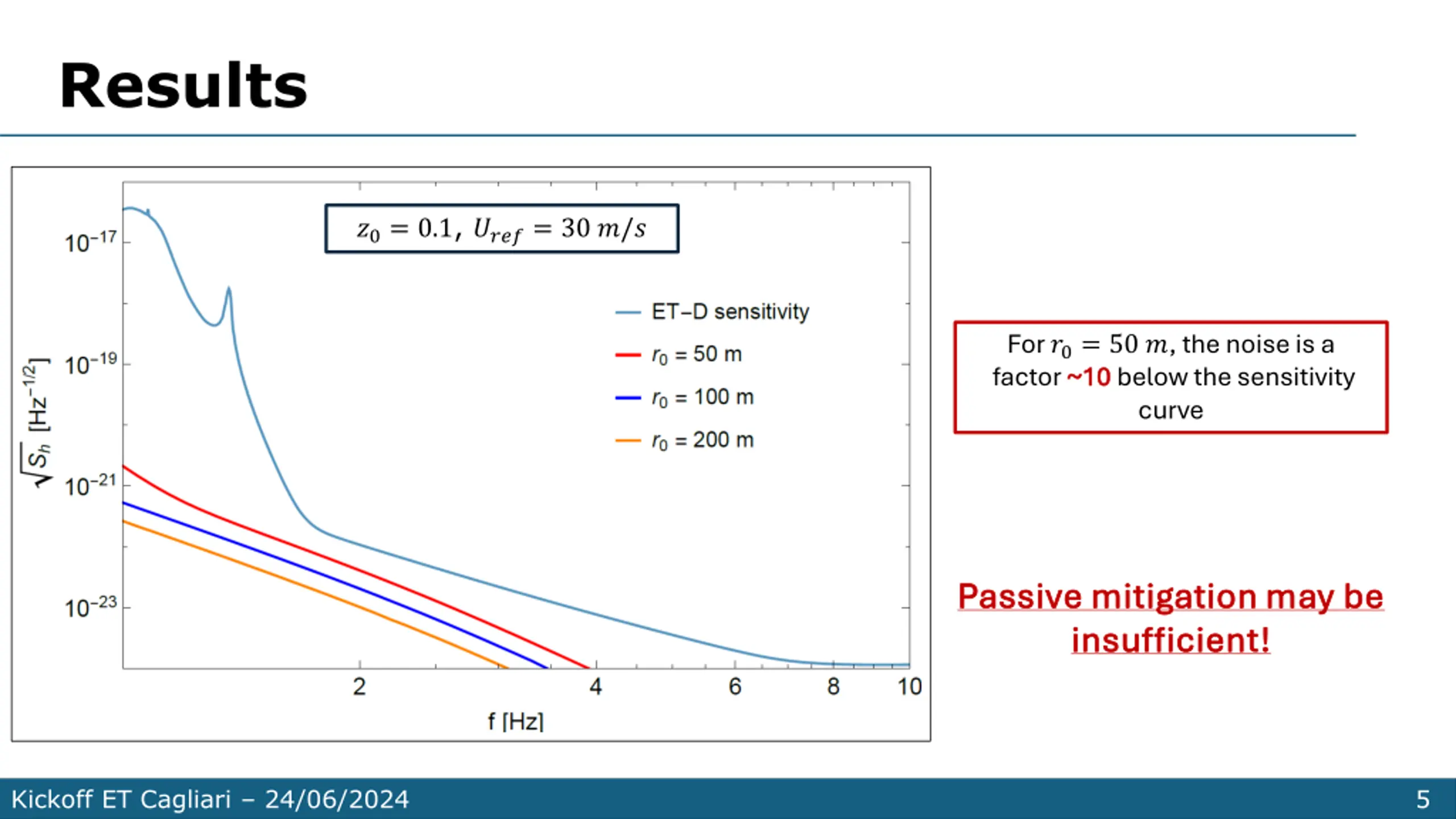 Results ?0= 0.1, ????= 30 ?/? For ?0= 50 ?, the noise is a factor ~10 ~10 below the sensitivity curve Passive Passive mitigation mitigation may insufficient insufficient! ! may be be Kickoff ET Cagliari 24/06/2024 5