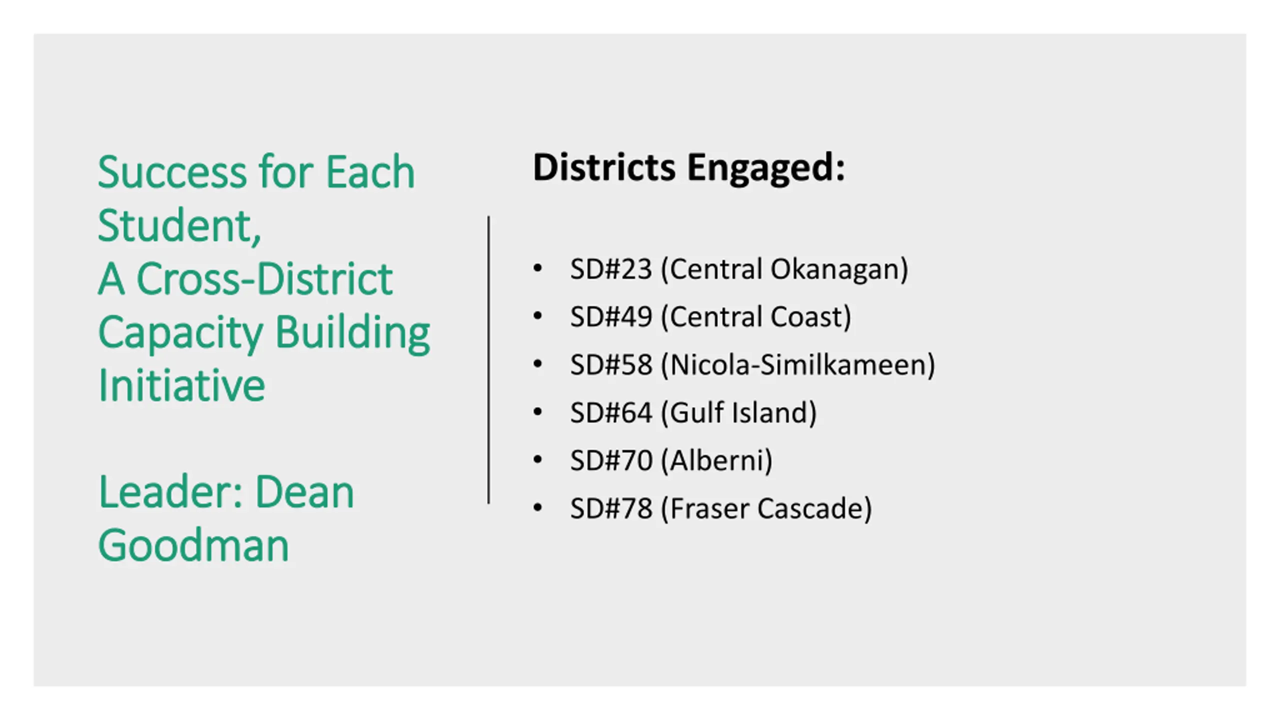 Districts Engaged: Success for Each Success for Each Student, Student, A Cross A Cross- -District District Capacity Building Capacity Building Initiative Initiative SD#23 (Central Okanagan) SD#49 (Central Coast) SD#58 (Nicola-Similkameen) SD#64 (Gulf Island) SD#70 (Alberni) SD#78 (Fraser Cascade) Leader: Dean Leader: Dean Goodman Goodman