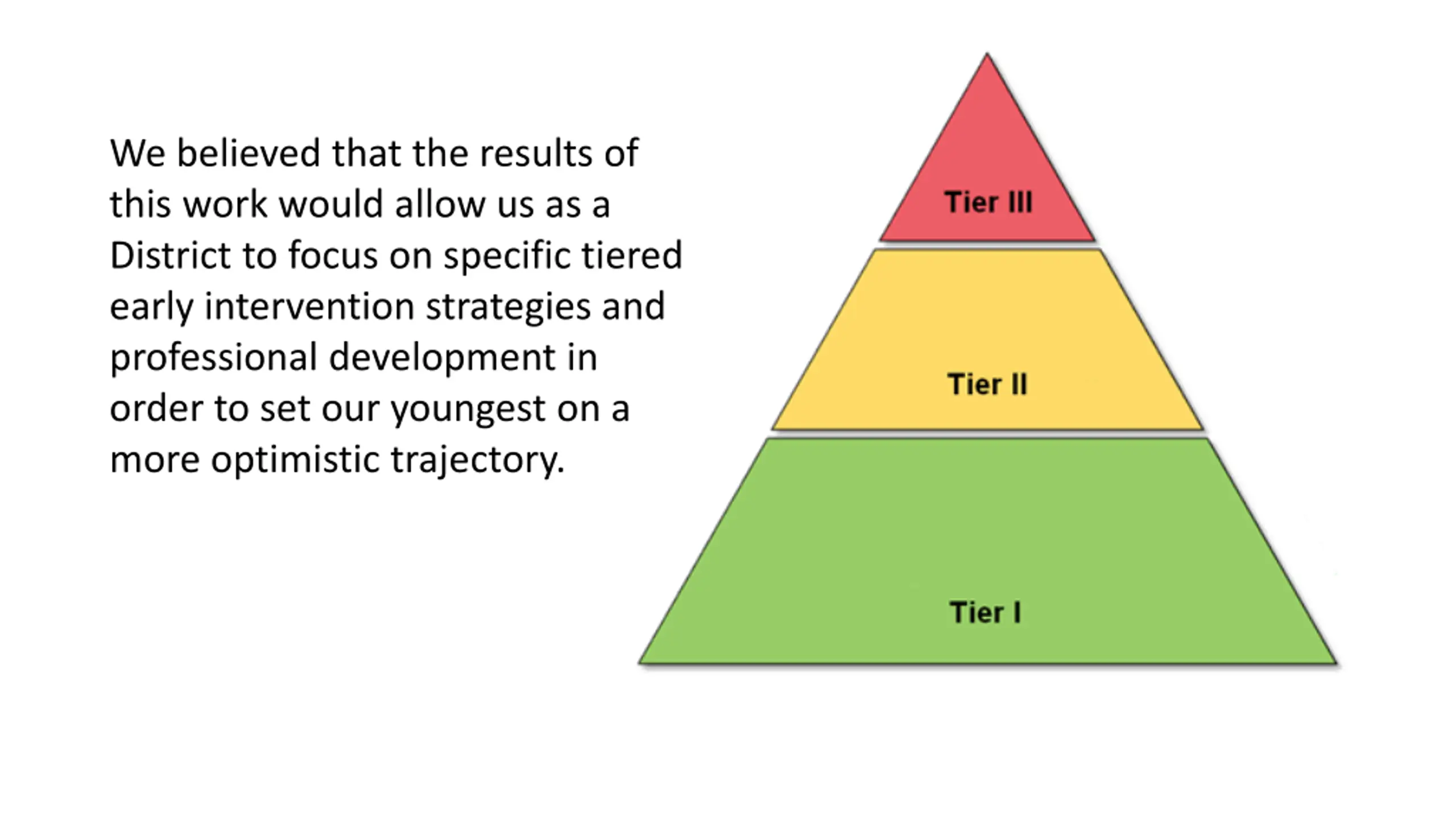 We believed that the results of this work would allow us as a District to focus on specific tiered early intervention strategies and professional development in order to set our youngest on a more optimistic trajectory.