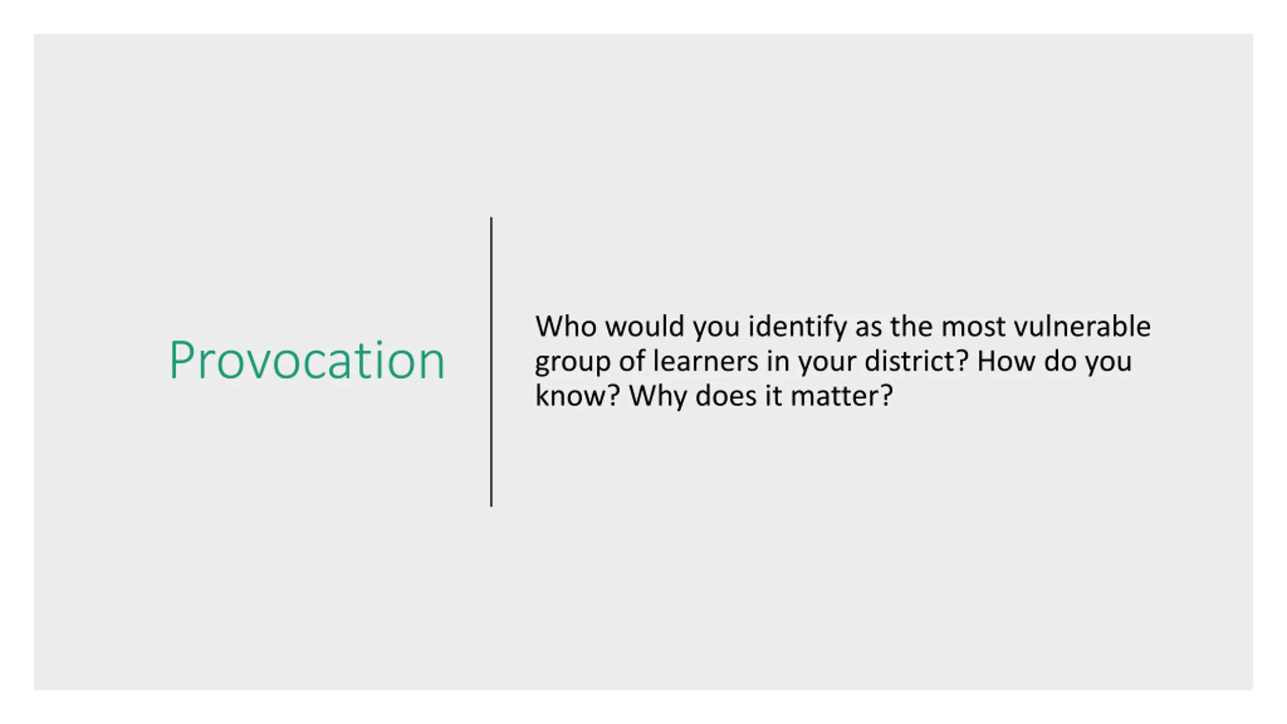 Who would you identify as the most vulnerable group of learners in your district? How do you know? Why does it matter? Provocation