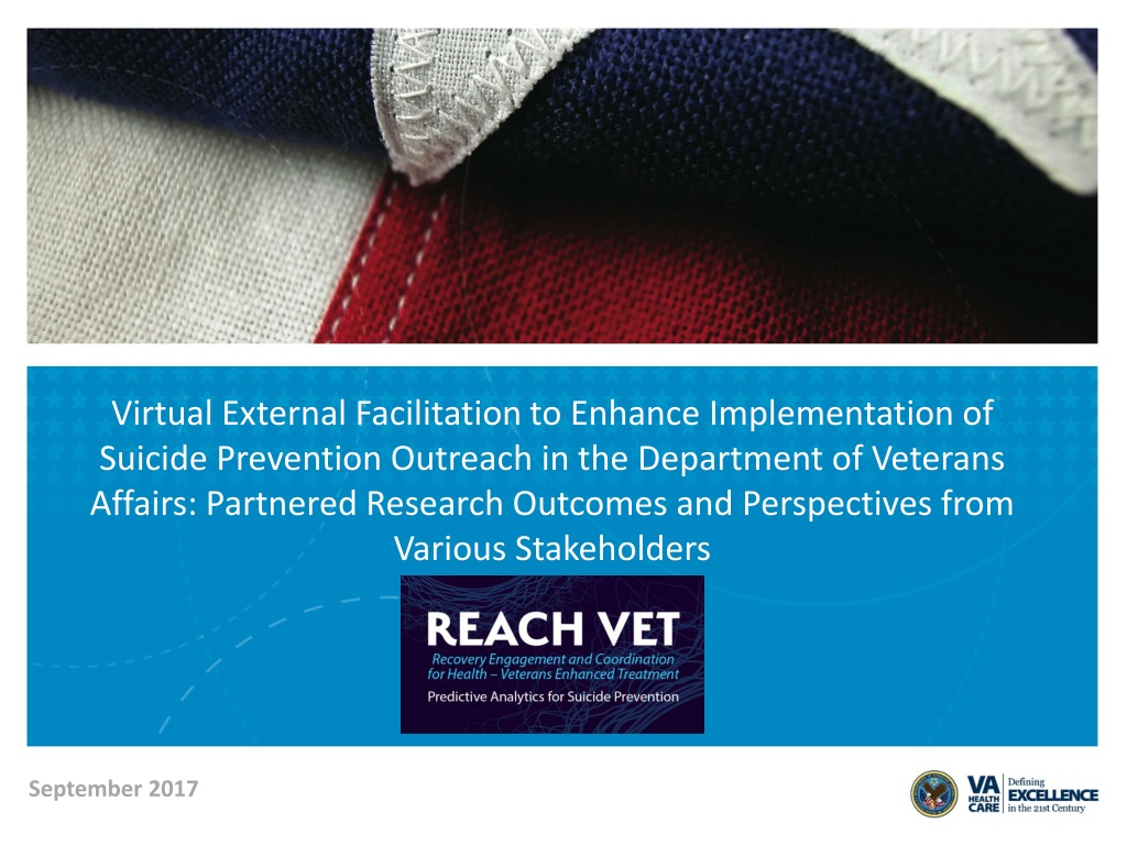 Virtual External Facilitation to Enhance Implementation of Suicide Prevention Outreach in the Department of Veterans Affairs: Partnered Research Outcomes and Perspectives from Various Stakeholders September 2017