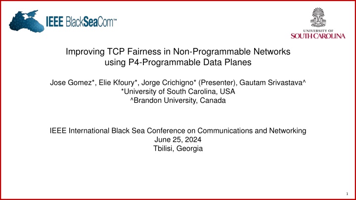 Improving TCP Fairness in Non-Programmable Networks using P4-Programmable Data Planes Jose Gomez*, Elie Kfoury*, Jorge Crichigno* (Presenter), Gautam Srivastava^ *University of South Carolina, USA ^Brandon University, Canada IEEE International Black Sea Conference on Communications and Networking June 25, 2024 Tbilisi, Georgia 1