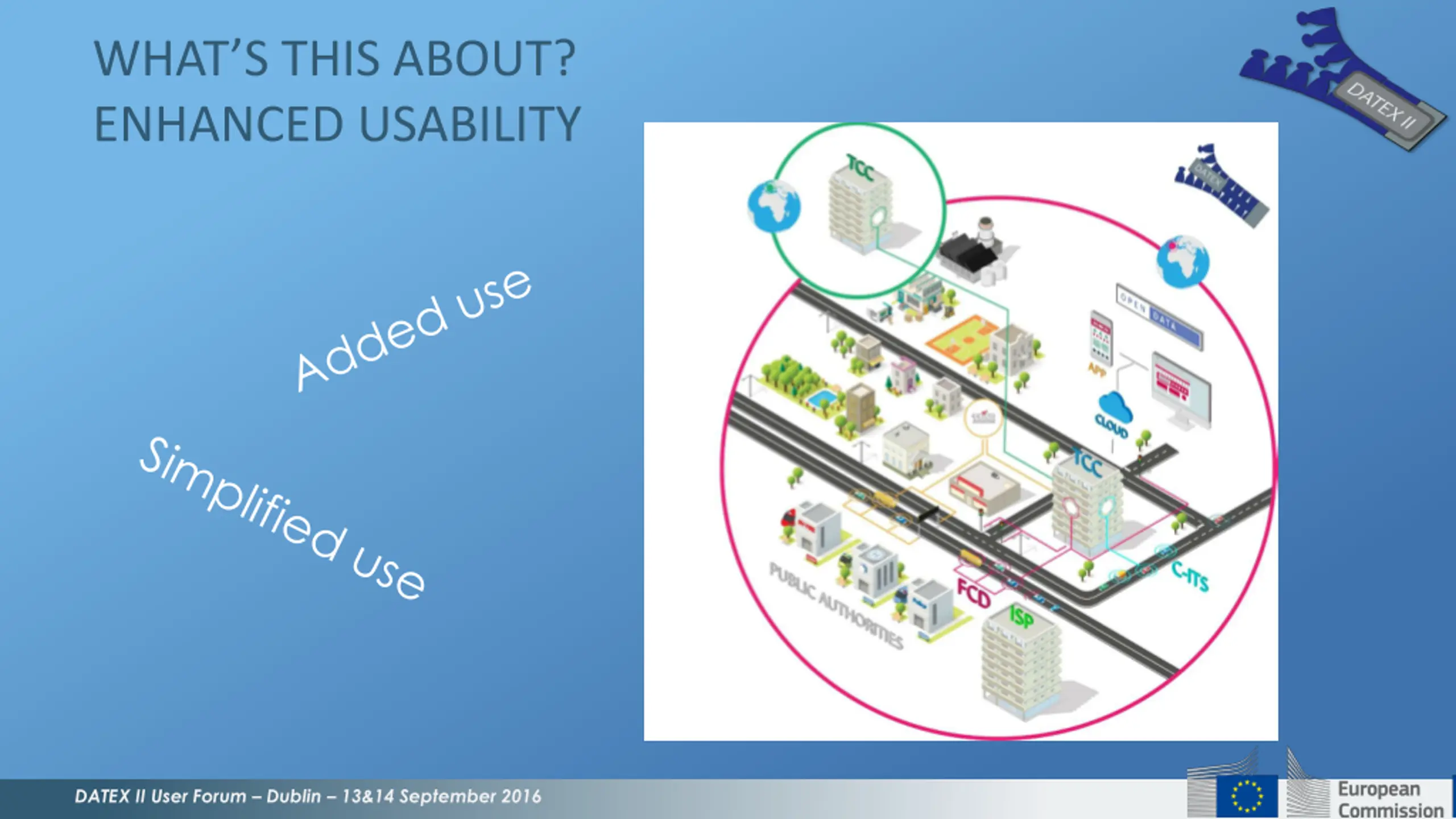 WHATS THIS ABOUT? ENHANCED USABILITY DATEX II User Forum Dublin 13&14 September 2016