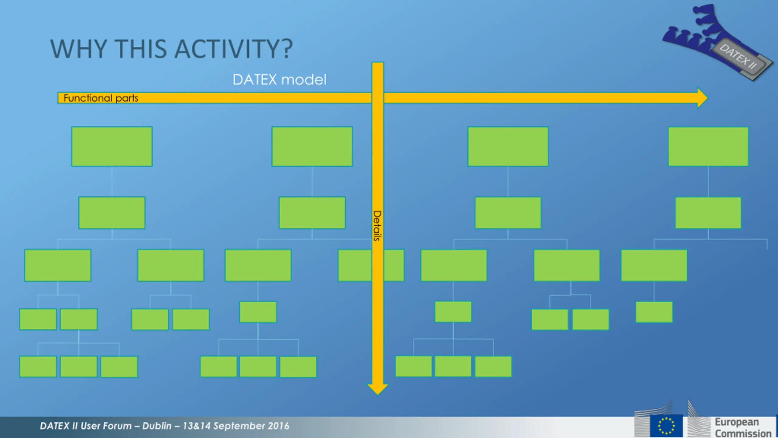 WHY THIS ACTIVITY? DATEX model Functional parts Details DATEX II User Forum Dublin 13&14 September 2016