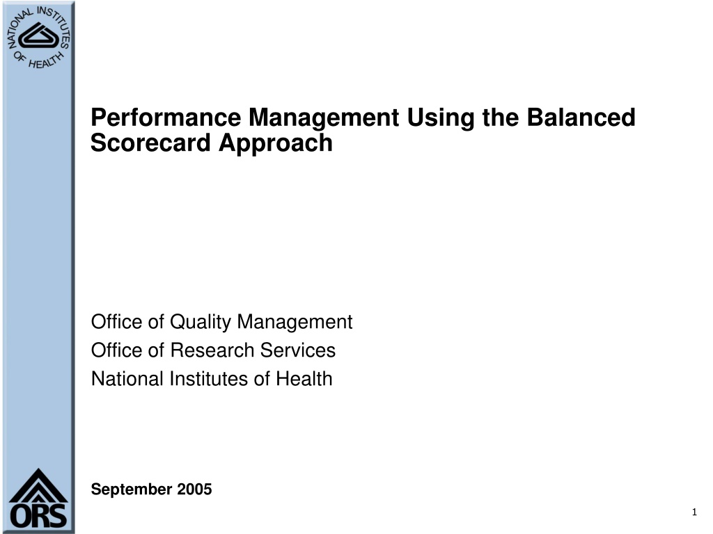 Performance Management Using the Balanced Scorecard Approach Office of Quality Management Office of Research Services National Institutes of Health September 2005 1