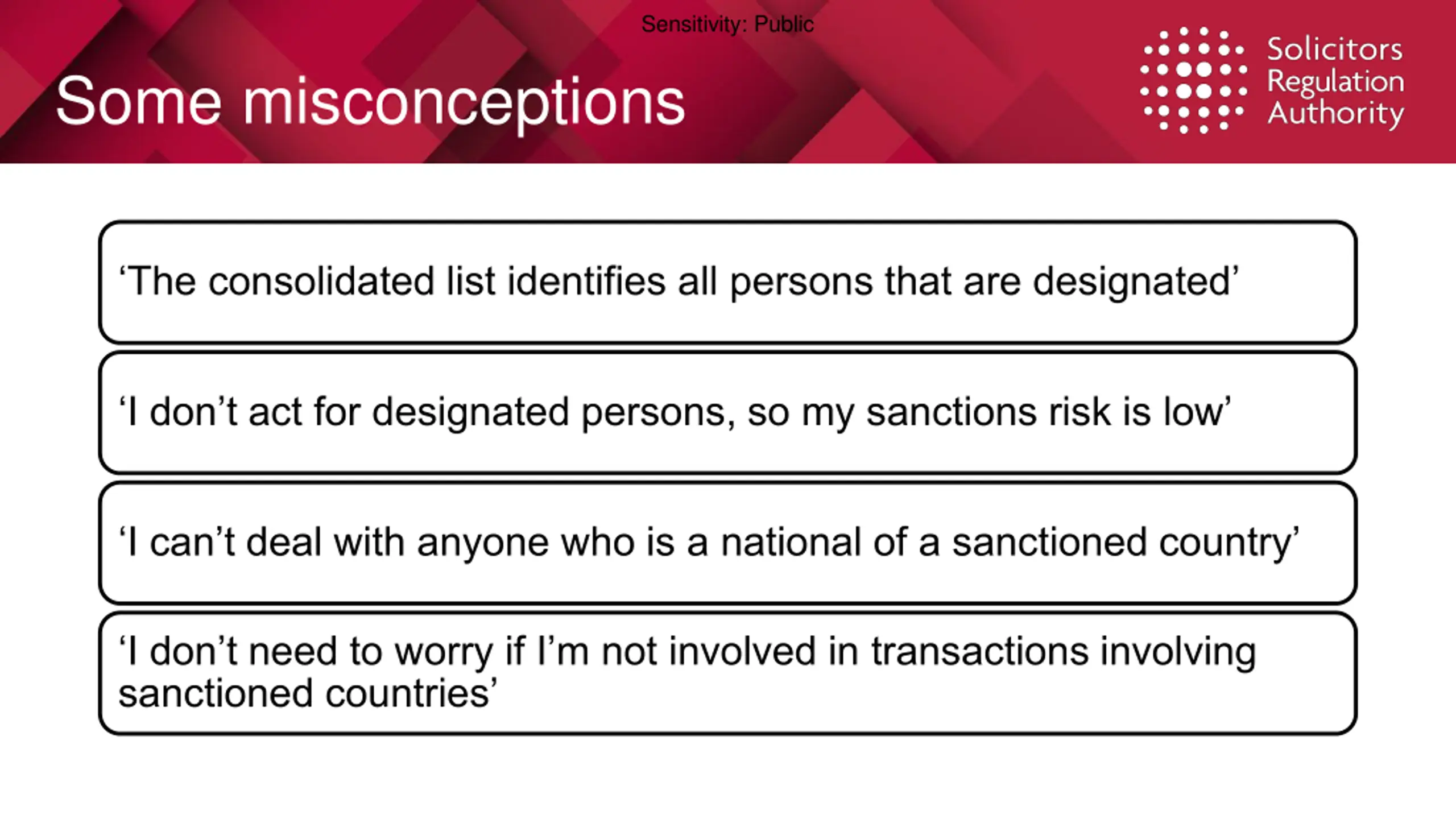 Sensitivity: Public Some misconceptions The consolidated list identifies all persons that are designated I don t act for designated persons, so my sanctions risk is low I can t deal with anyone who is a national of a sanctioned country I don t need to worry if I m not involved in transactions involving sanctioned countries