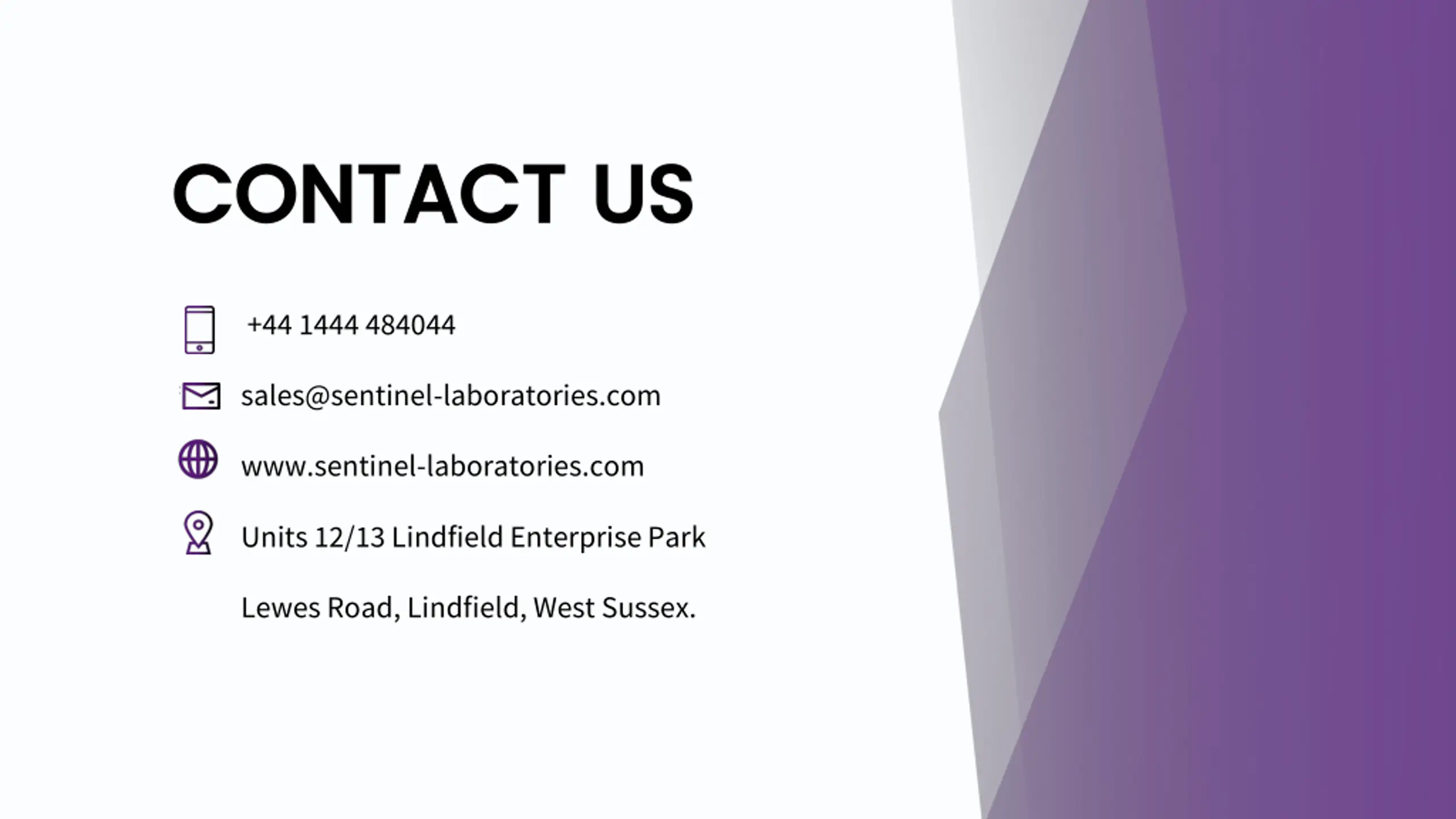 CONTACT US CONTACT US +44 1444 484044 sales@sentinel-laboratories.com www.sentinel-laboratories.com Units 12/13 Lindfield Enterprise Park Lewes Road, Lindfield, West Sussex.