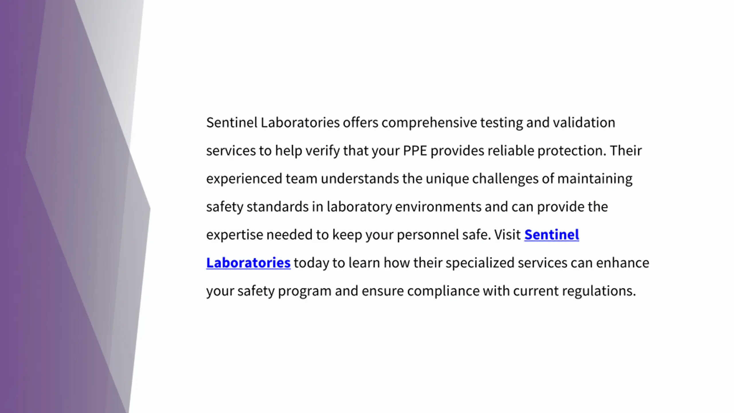 Sentinel Laboratories offers comprehensive testing and validation services to help verify that your PPE provides reliable protection. Their experienced team understands the unique challenges of maintaining safety standards in laboratory environments and can provide the expertise needed to keep your personnel safe. Visit Sentinel Laboratories today to learn how their specialized services can enhance your safety program and ensure compliance with current regulations.