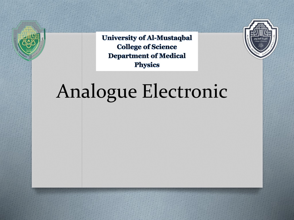 University of Al-Mustaqbal College of Science Department of Medical Physics Analogue Electronic