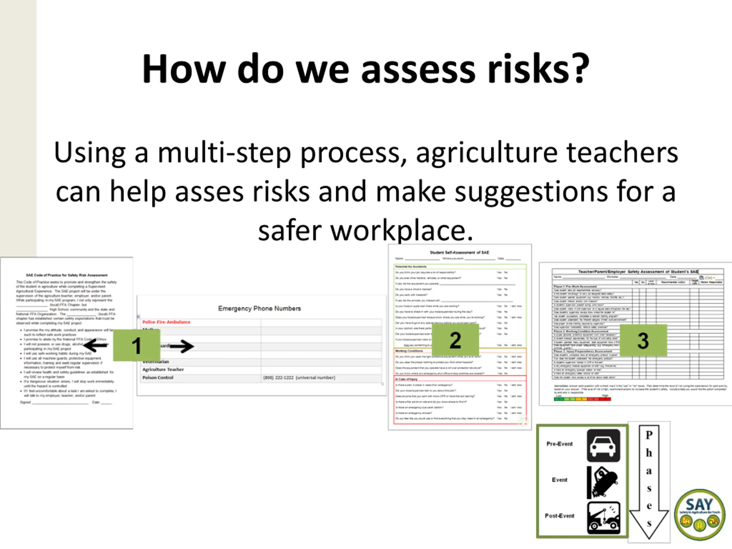 How do we assess risks? Using a multi-step process, agriculture teachers can help asses risks and make suggestions for a safer workplace.