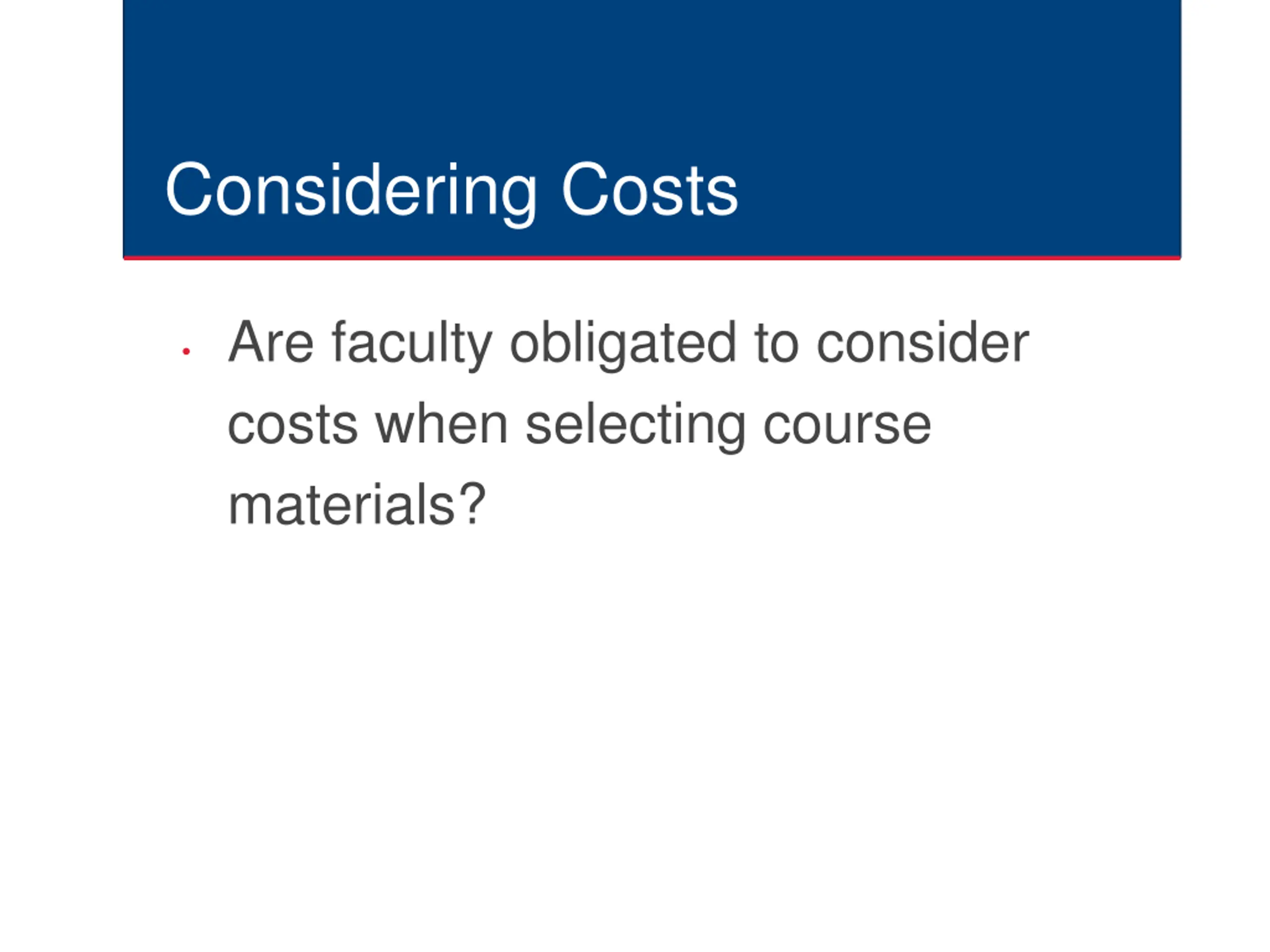 Considering Costs Are faculty obligated to consider costs when selecting course materials?