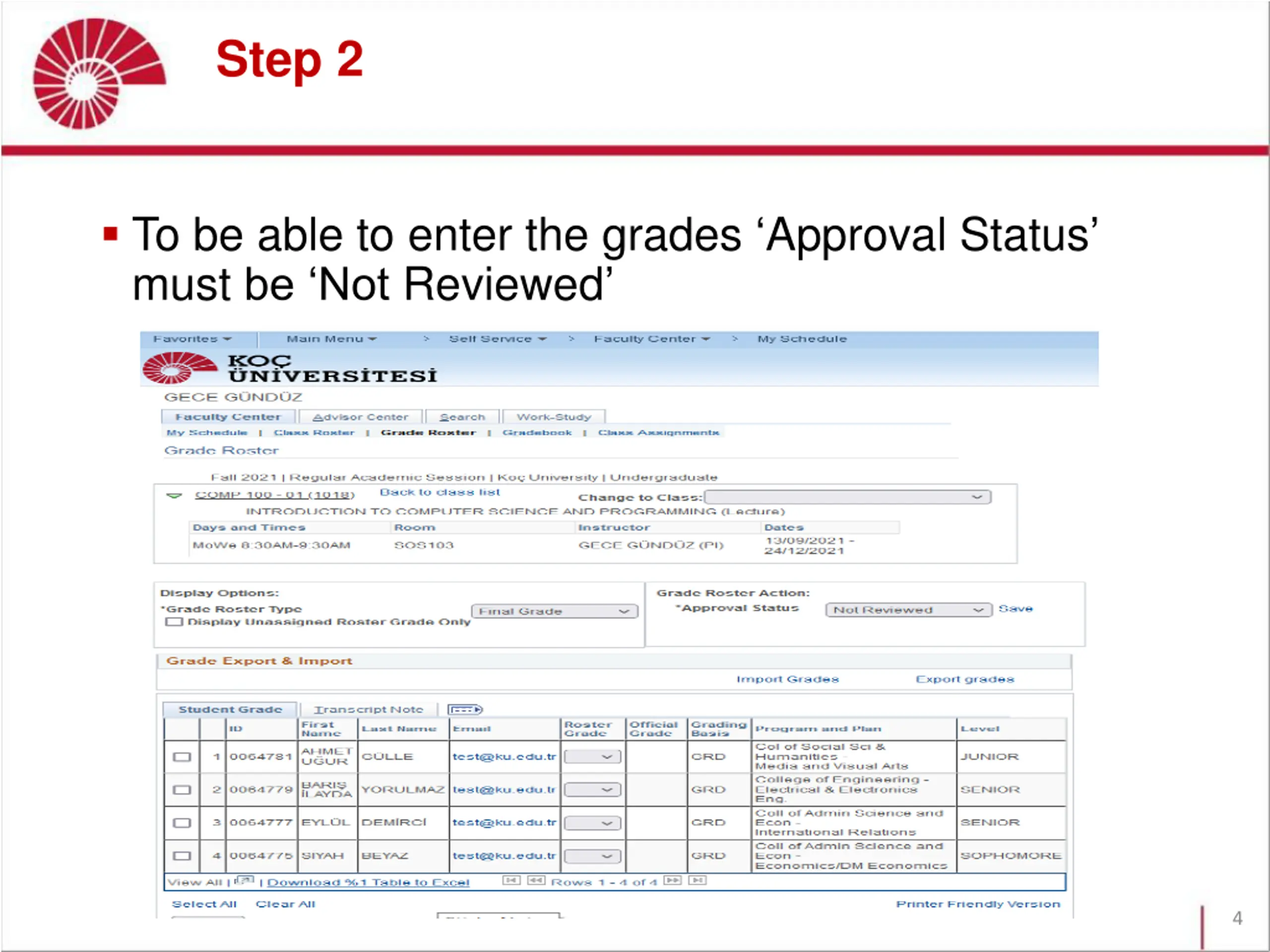 Step 2 To be able to enter the grades Approval Status must be Not Reviewed 4