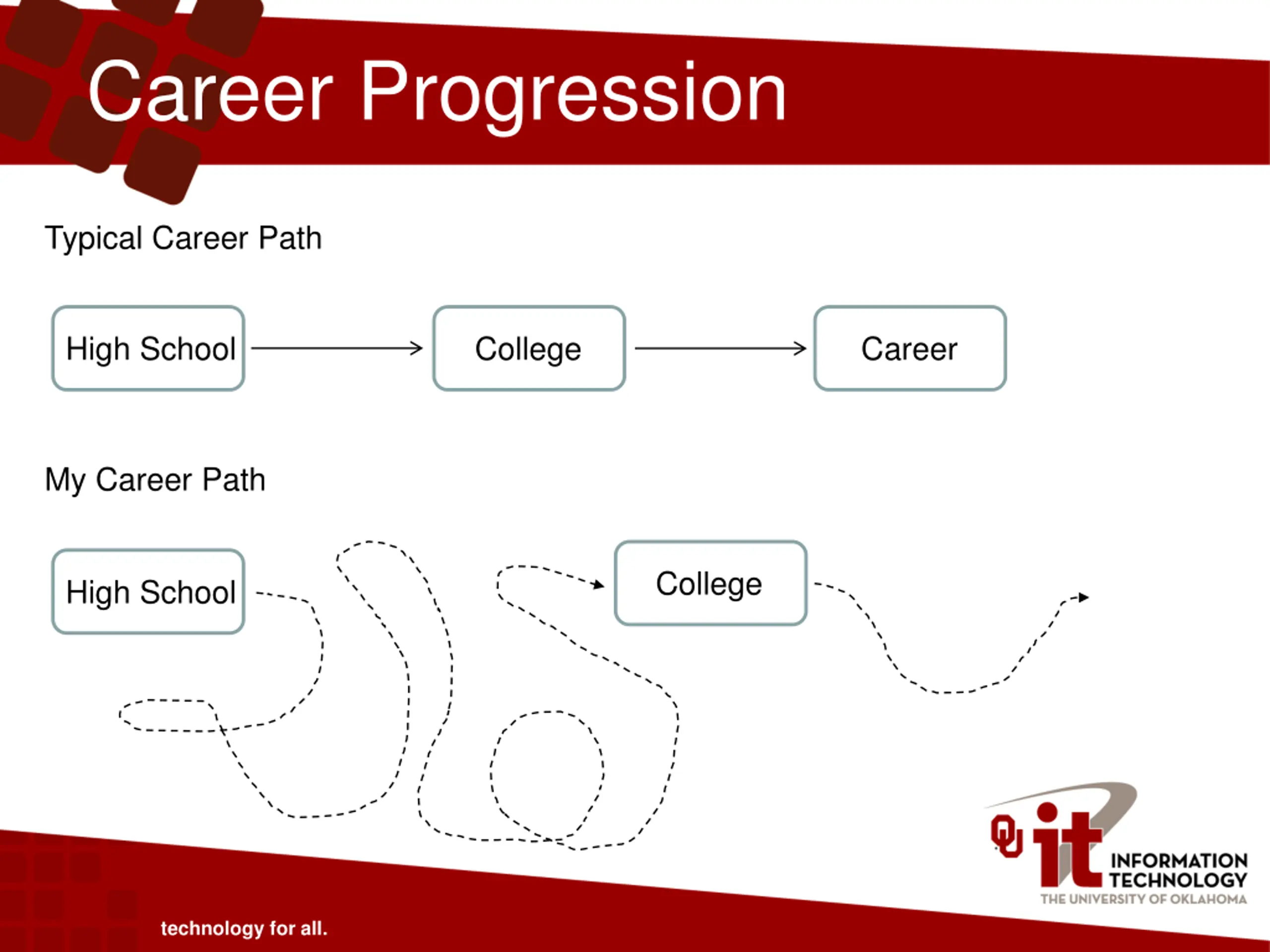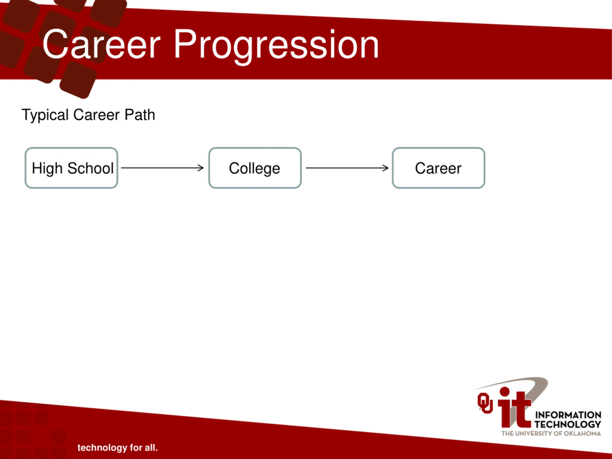 Career Progression Typical Career Path High School College Career My Career Path College High School technology for all.