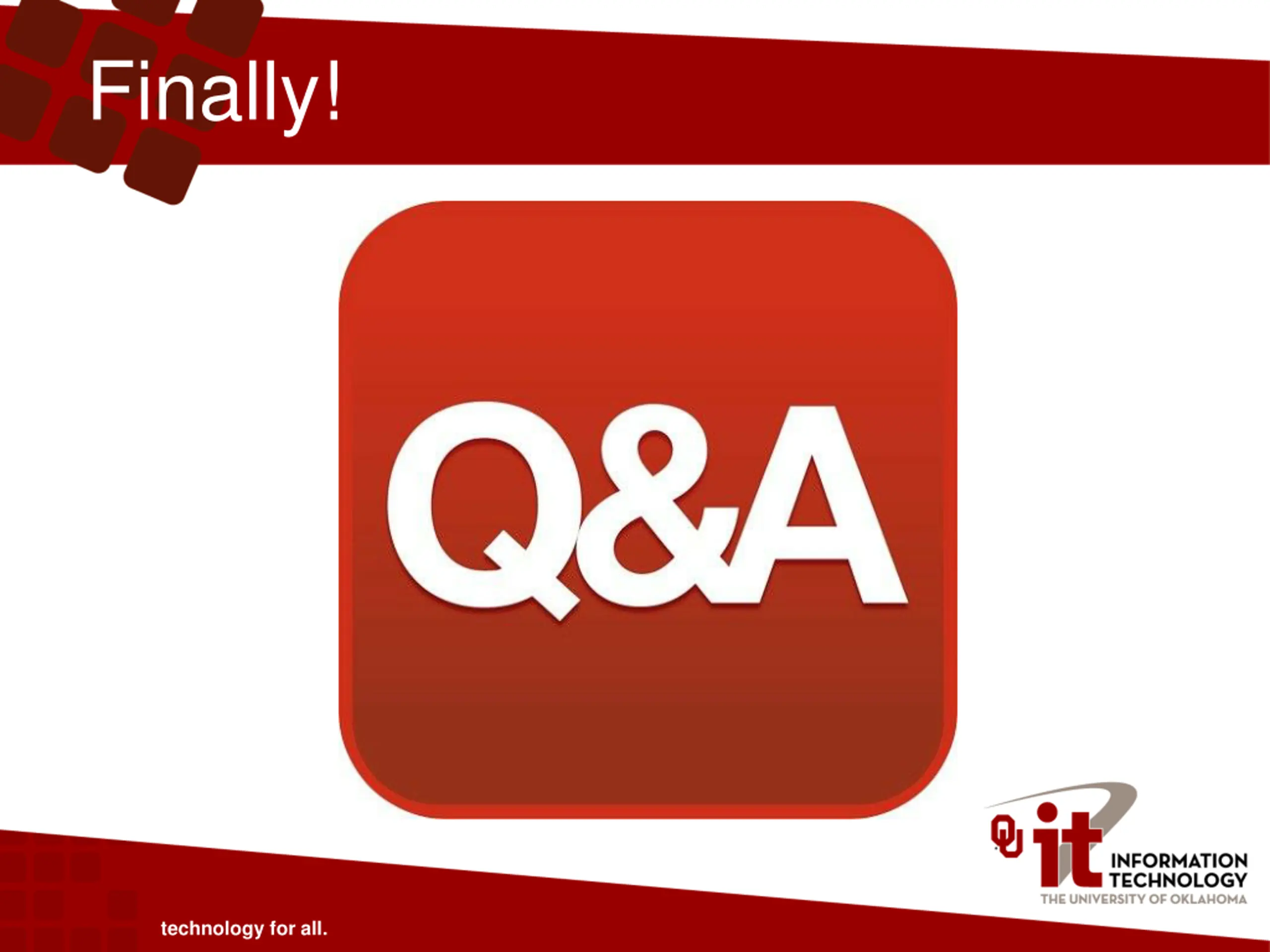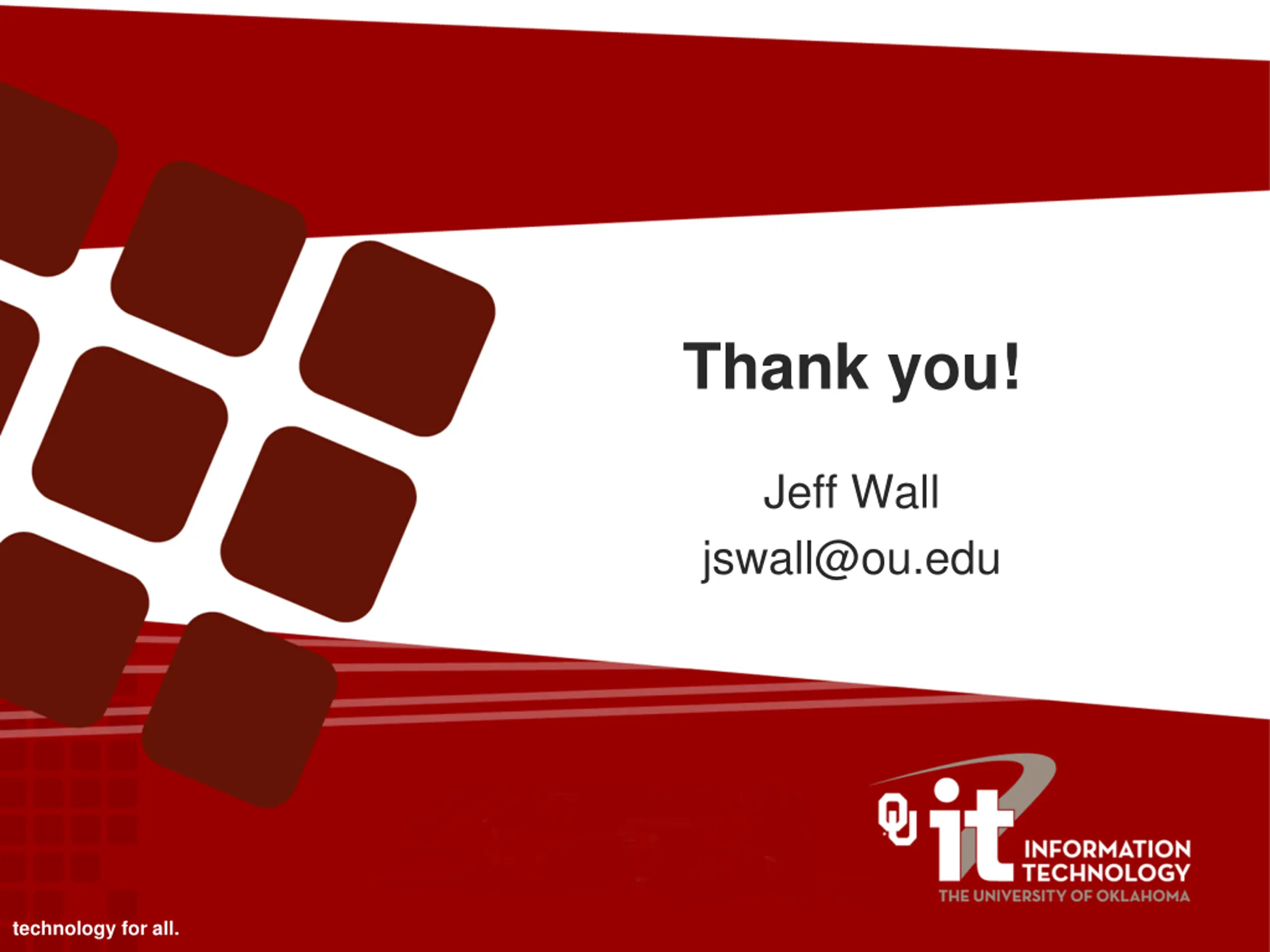 Thank you! Jeff Wall jswall@ou.edu technology for all.