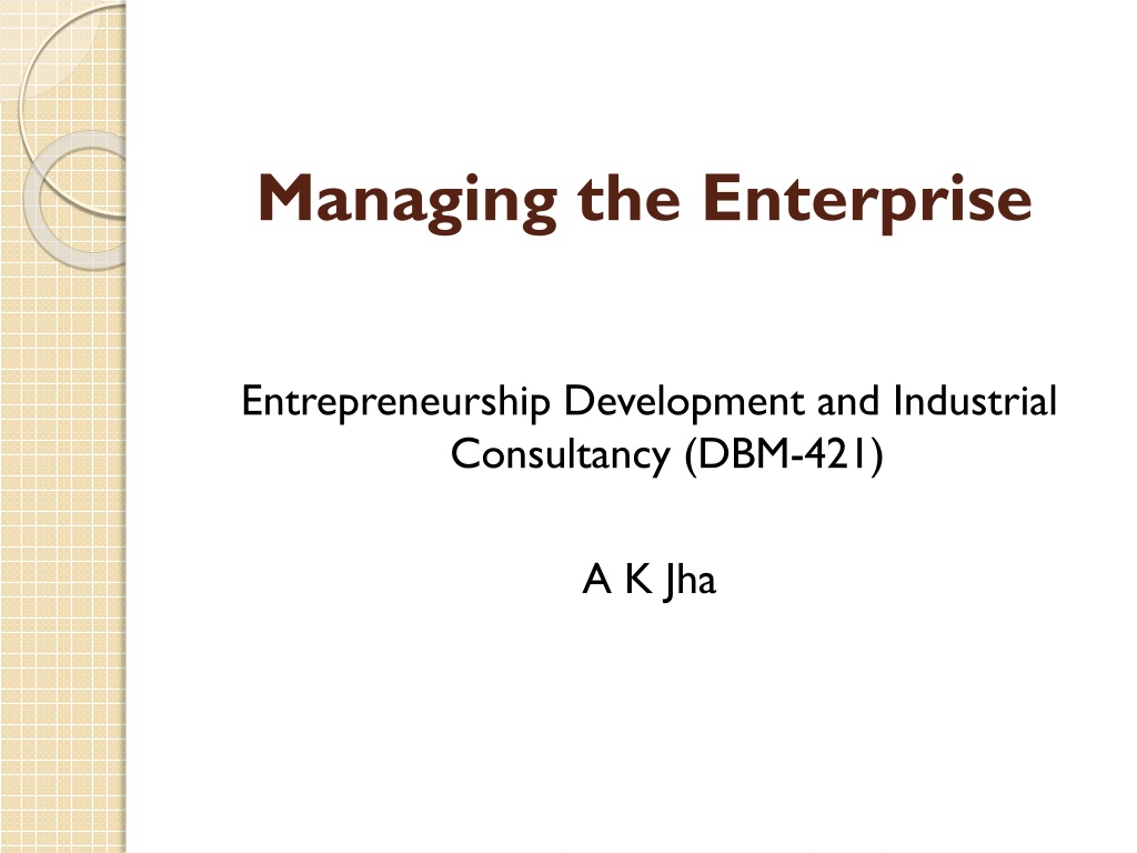Managing the Enterprise Entrepreneurship Development and Industrial Consultancy (DBM-421) A K Jha