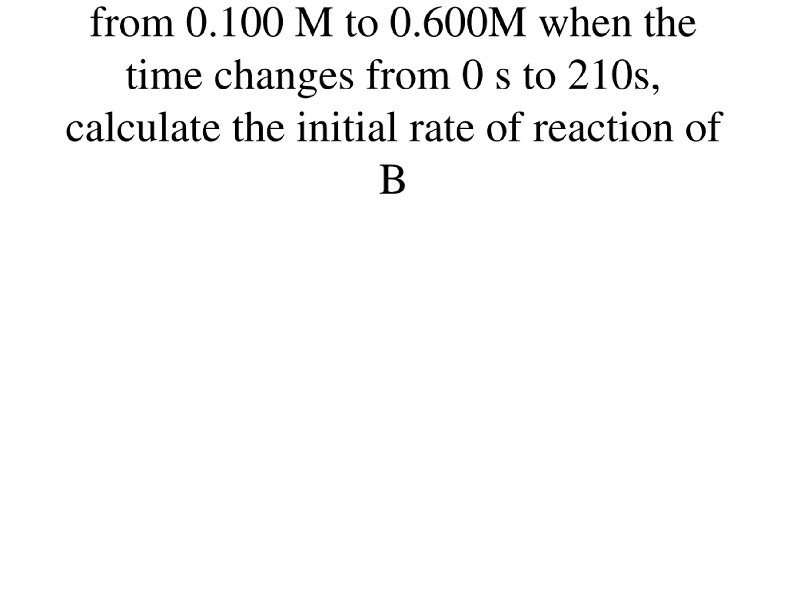 from 0.100 M to 0.600M when the time changes from 0 s to 210s, calculate the initial rate of reaction of B