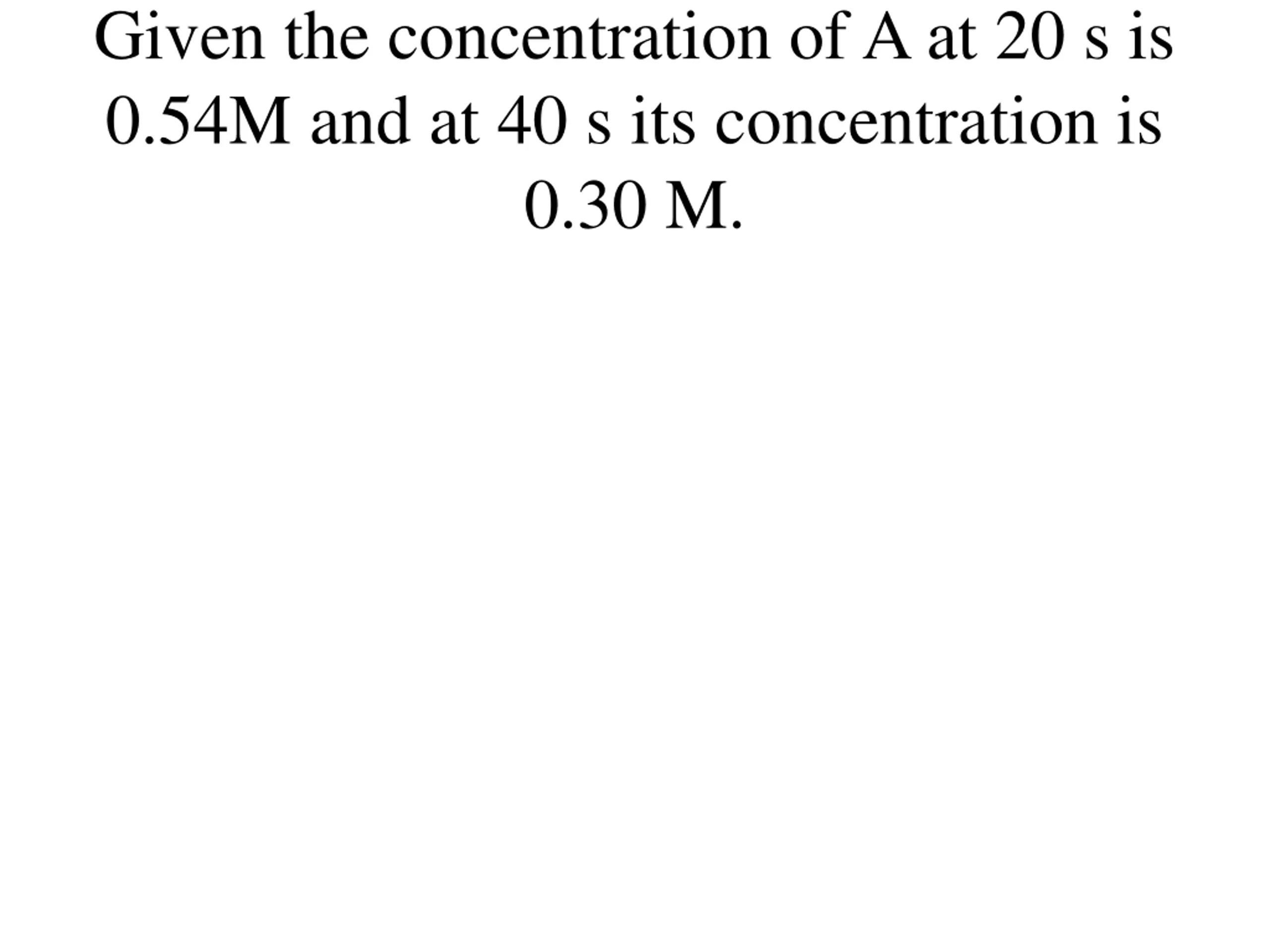 Given the concentration of A at 20 s is 0.54M and at 40 s its concentration is 0.30 M.
